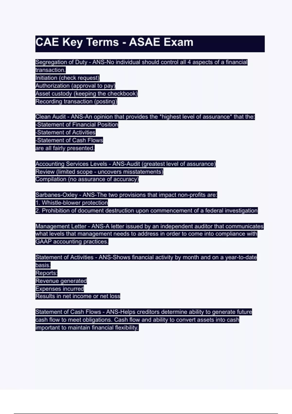 Clean Audit - ANS-An opinion that provides the *highest level of assurance* that the: