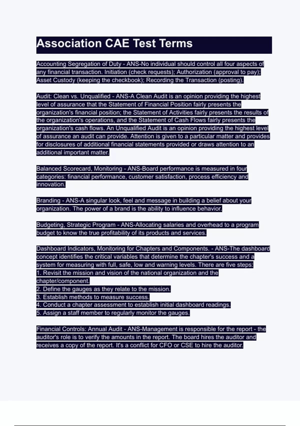 Association CAE Test Terms