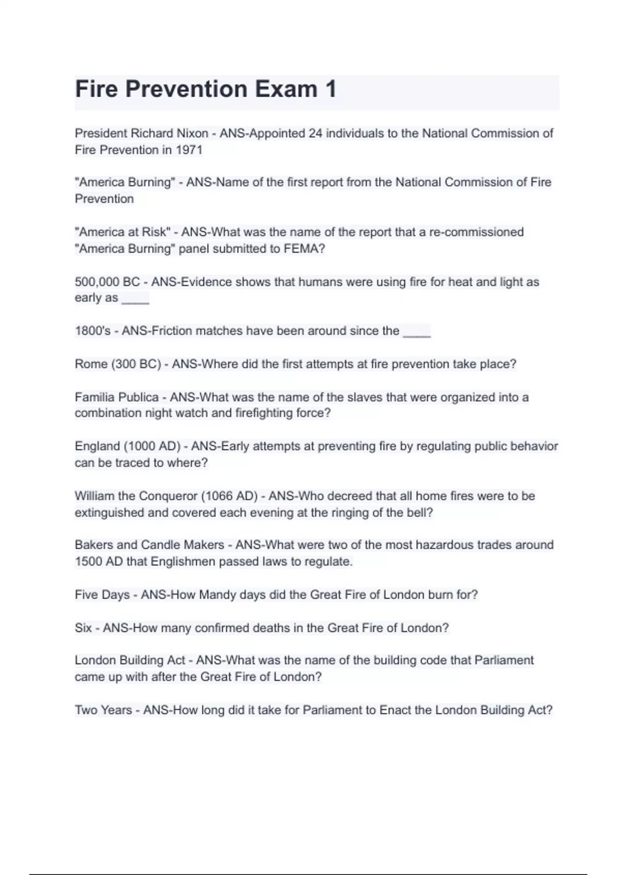 Fire Prevention Exam 1