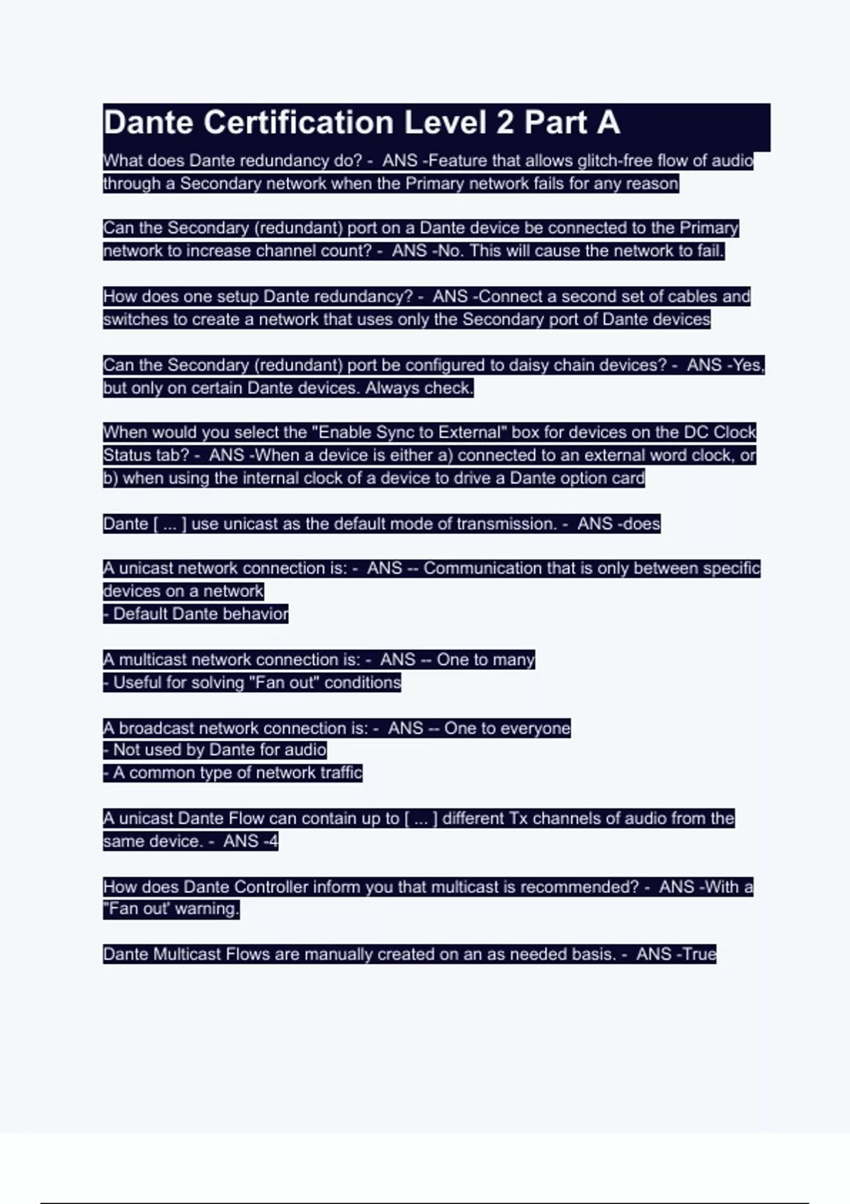 How does one setup Dante redundancy? - ANS -Connect a second set of cables and