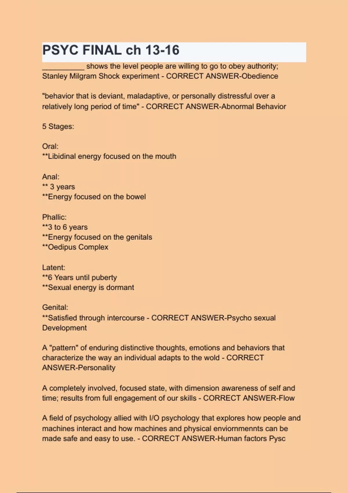 Stanley Milgram Shock experiment - CORRECT ANSWER-Obedience