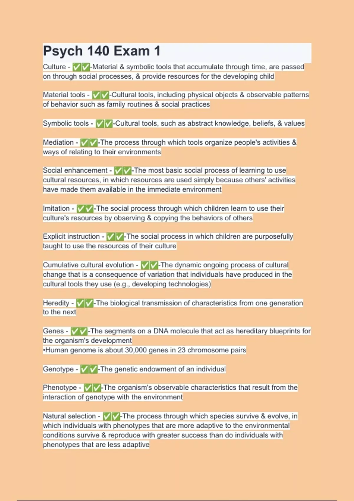 Culture -✅✅ -Material & symbolic tools that accumulate through time, are passed