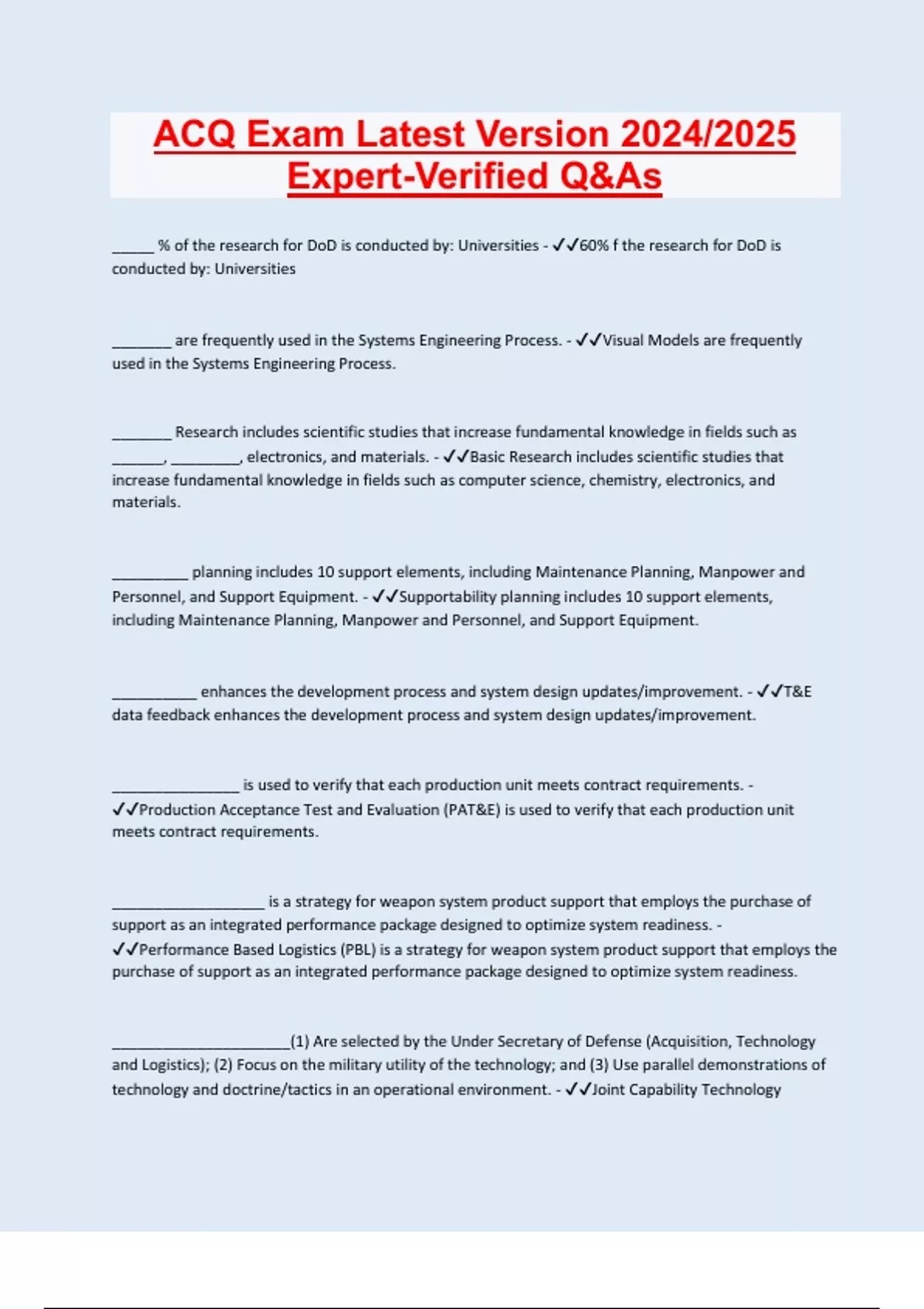 ACQ Exam Latest Version 2024/2025 Expert-Verified Q&As