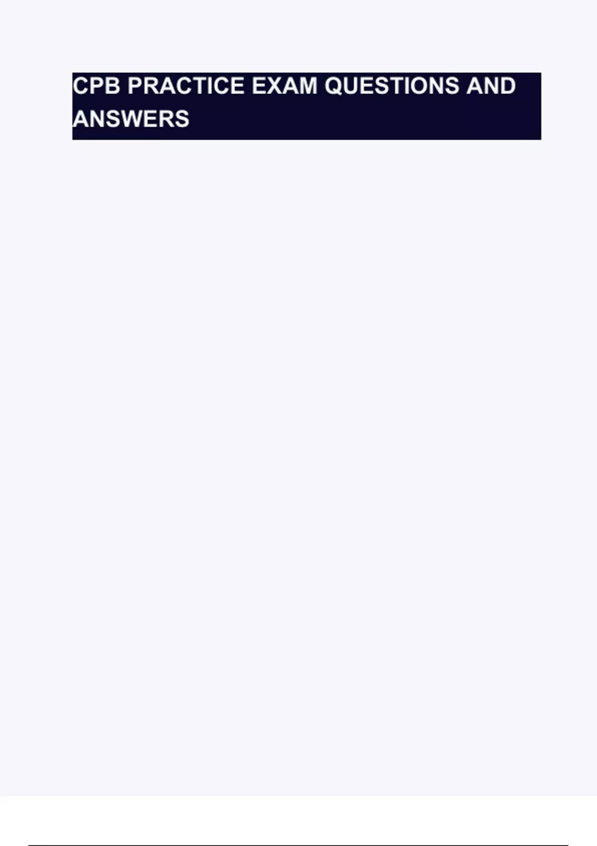 CPB PRACTICE EXAM QUESTIONS AND ANSWERS Questions with 100% Actual correct answers | verified | latest update | Graded A+ | Already Passed | Complete Solution