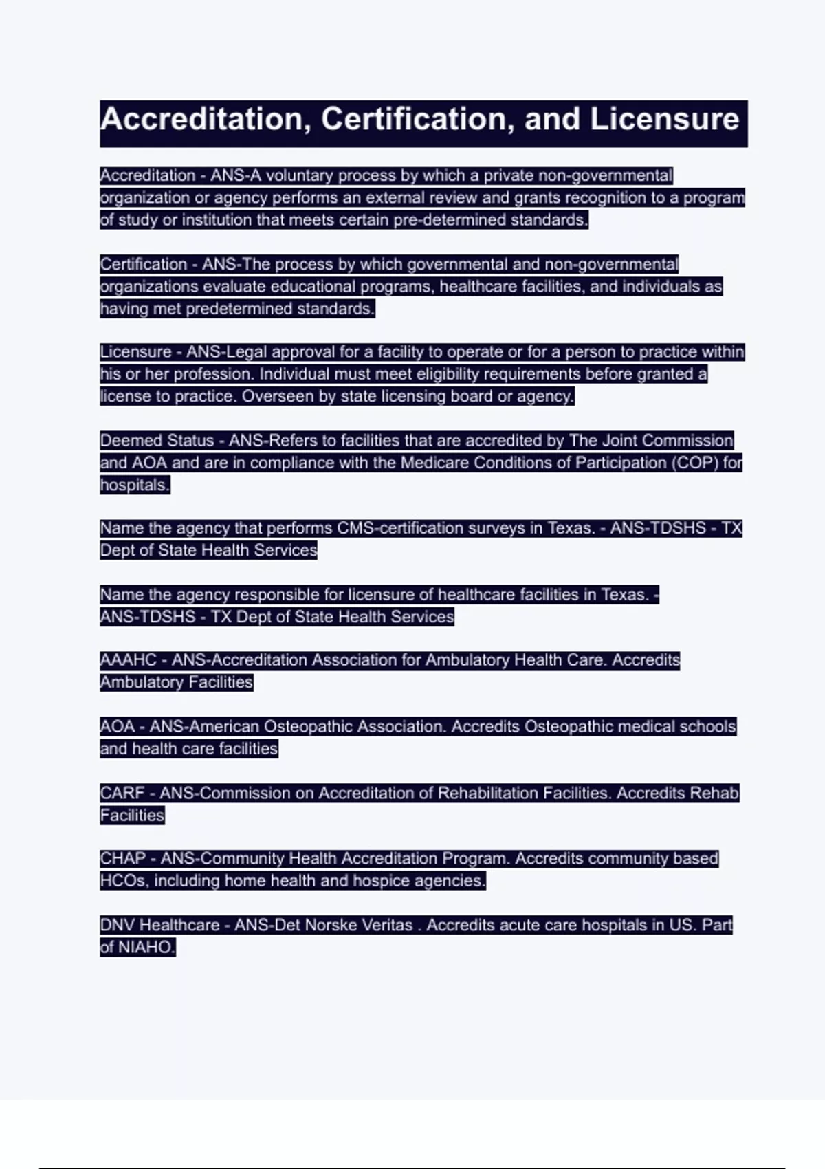 Accreditation - ANS-A voluntary process by which a private non-governmental