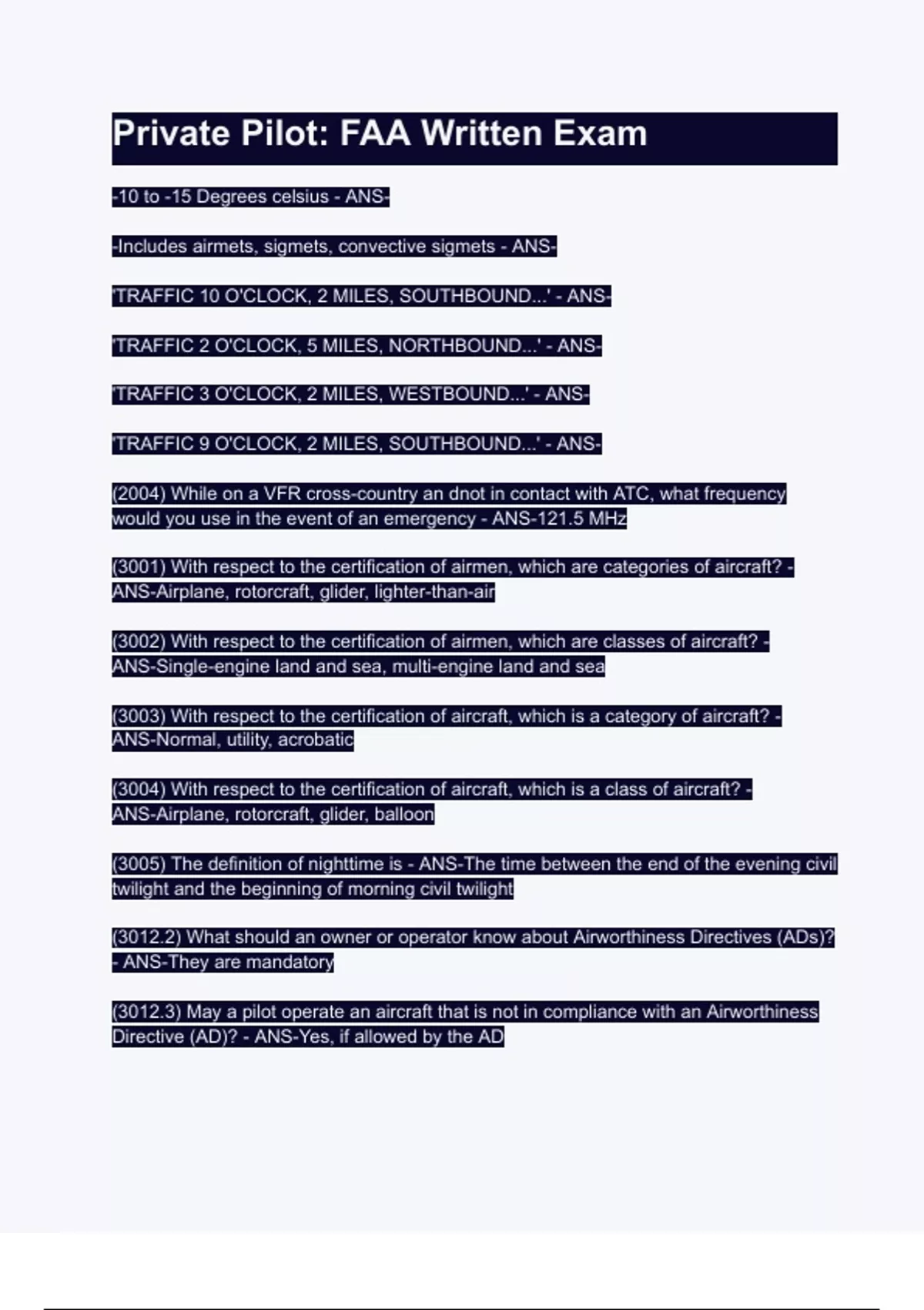 this year. To exercise the privileges of a Recreational or Private Pilot Certificate, the