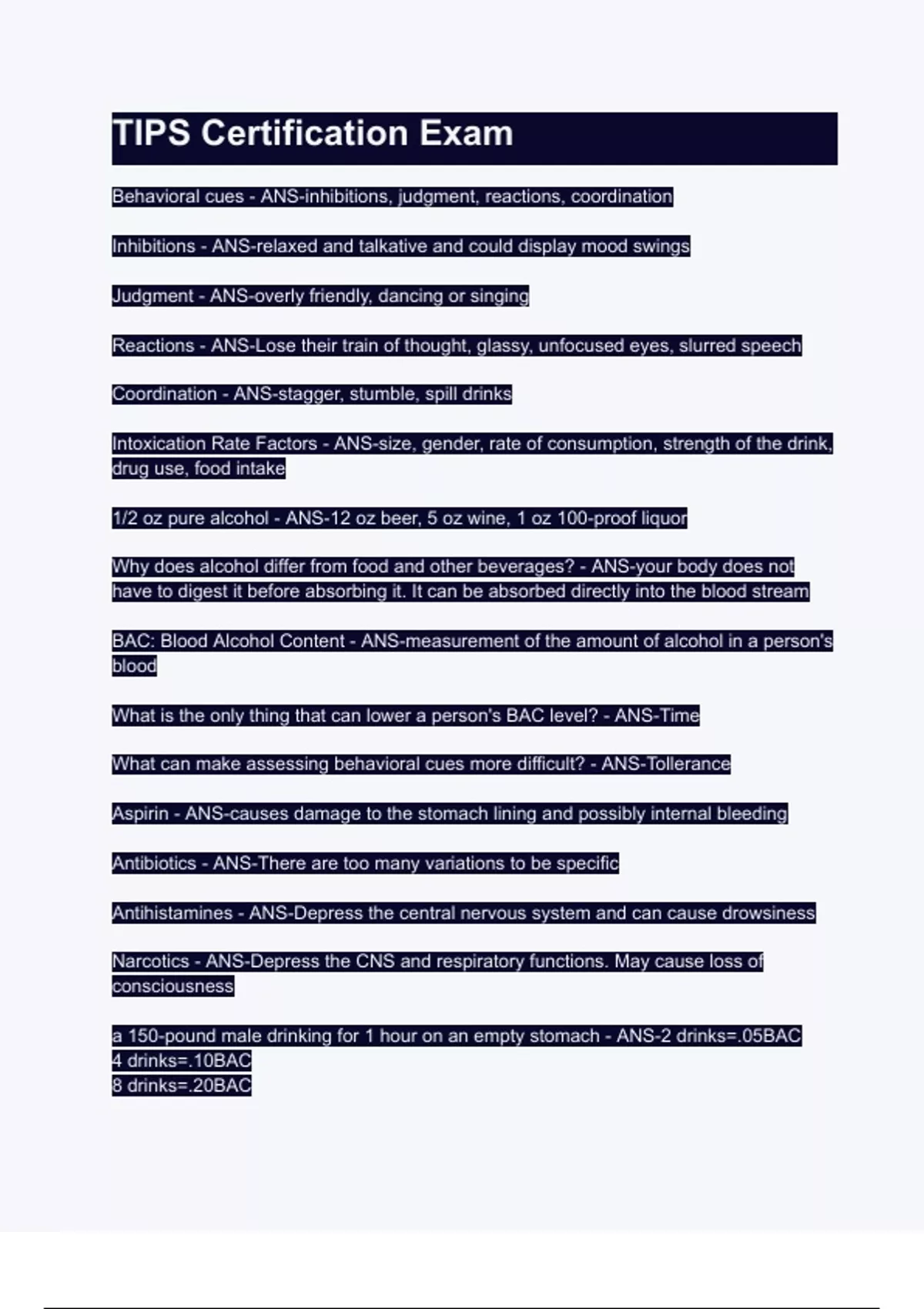 TIPS Certification Exam Questions with 100% Actual correct answers | verified | latest update | Graded A+ | Already Passed | Complete Solution