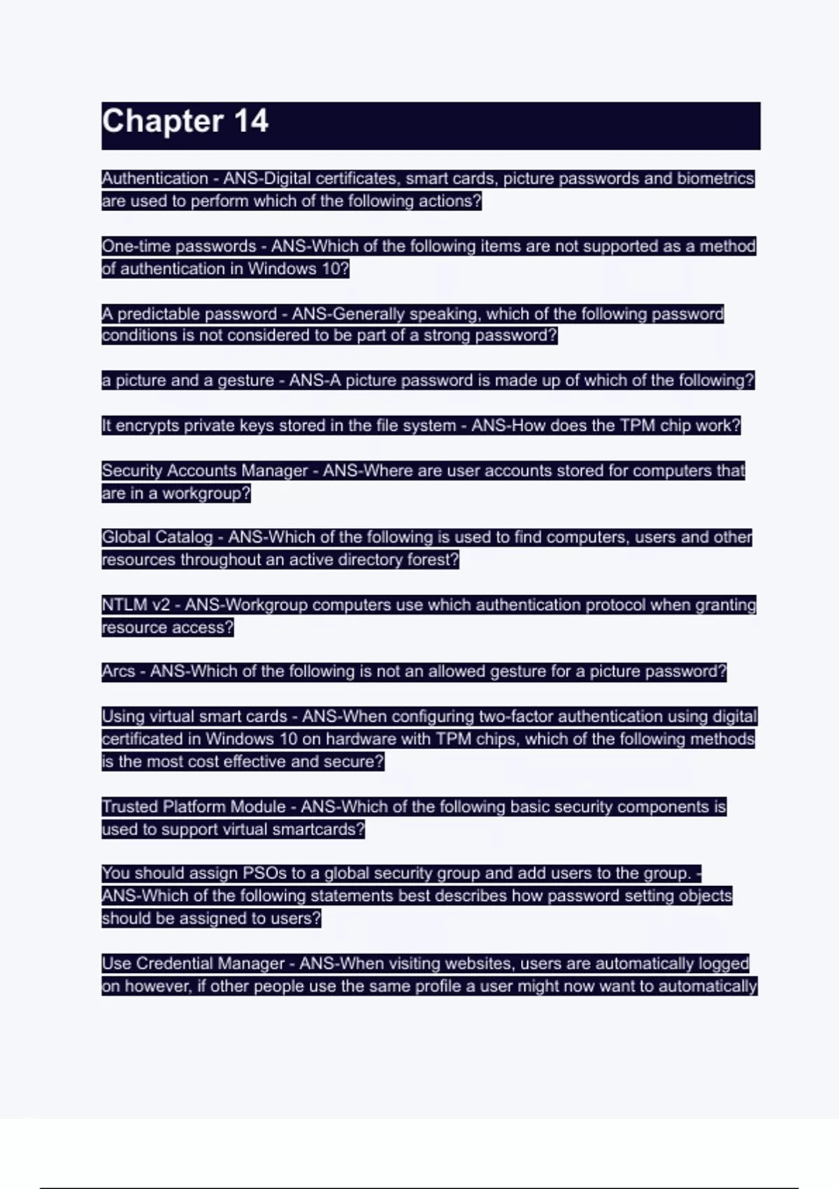 Authentication - ANS-Digital certificates, smart cards, picture passwords and biometrics