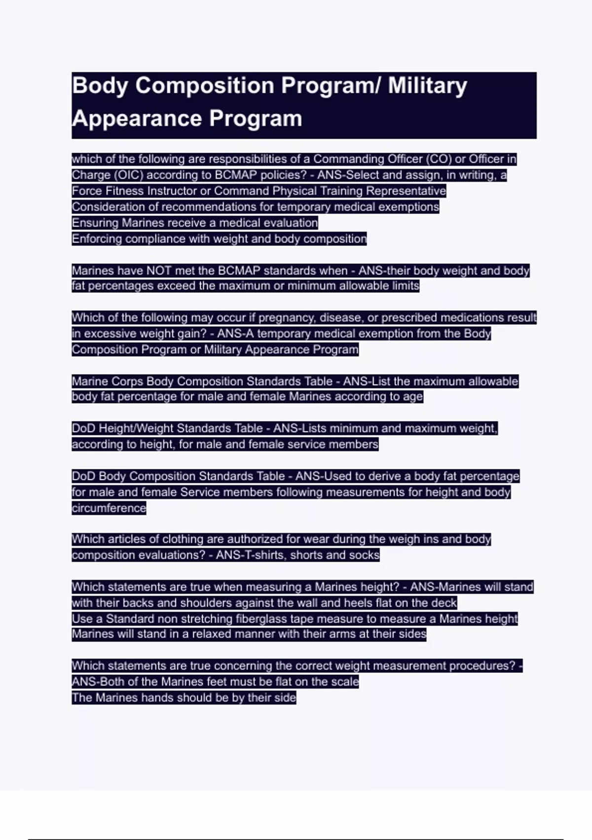 Marines have NOT met the BCMAP standards when - ANS-their body weight and body