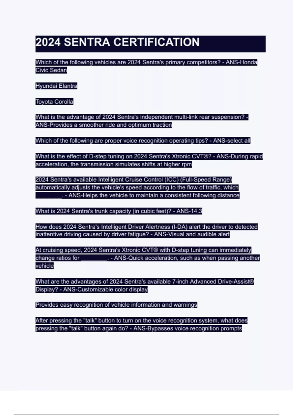 2024 SENTRA CERTIFICATION Questions with 100% Actual correct answers | verified | latest update | Graded A+ | Already Passed | Complete Solution