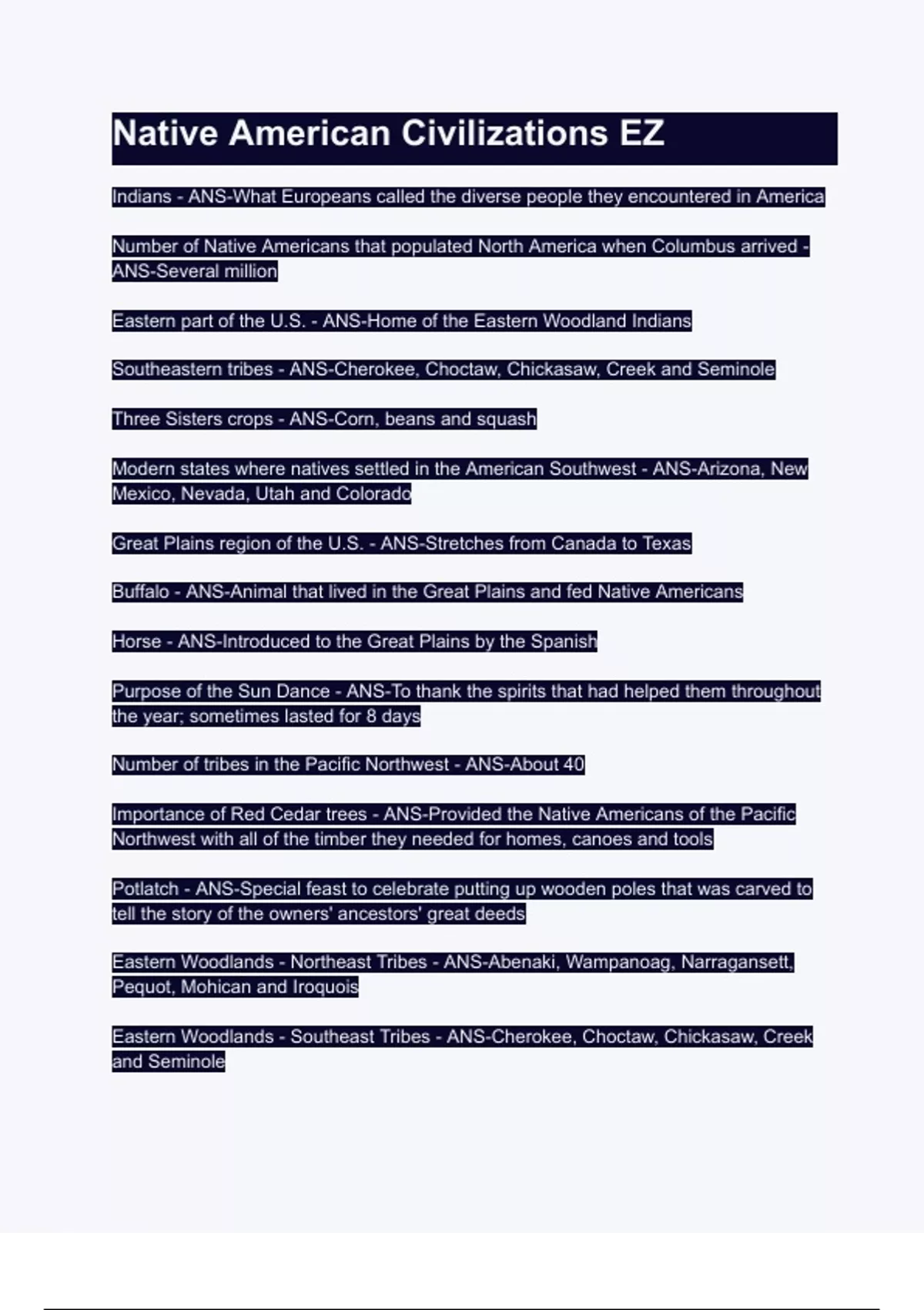 Native American Civilizations EZ Questions with 100% Actual correct answers | verified | latest update | Graded A+ | Already Passed | Complete Solution