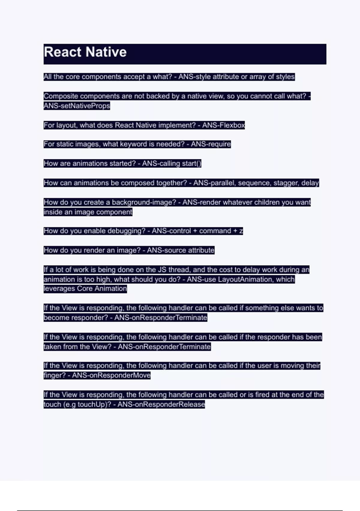 React Native Questions with 100% Actual correct answers | verified | latest update | Graded A+ | Already Passed | Complete Solution