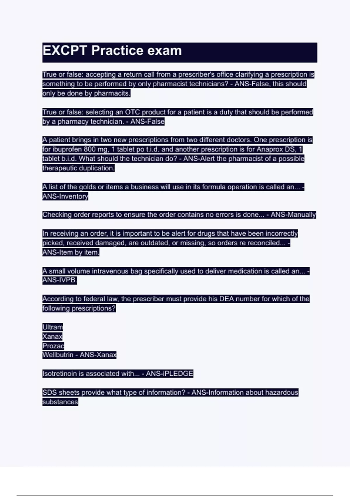 something to be performed by only pharmacist technicians? - ANS-False, this should