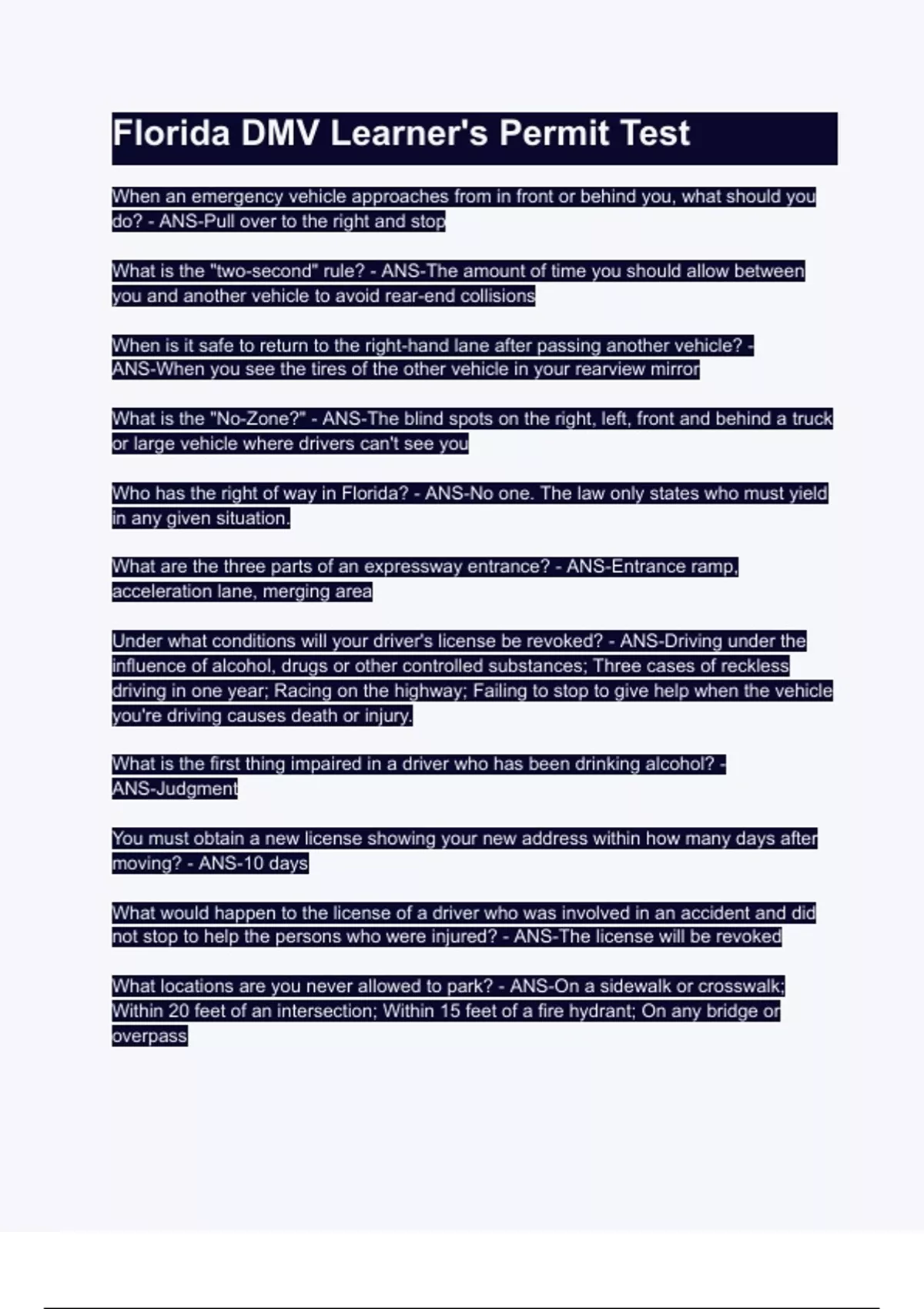Who has the right of way in Florida? - ANS-No one. The law only states who must yield