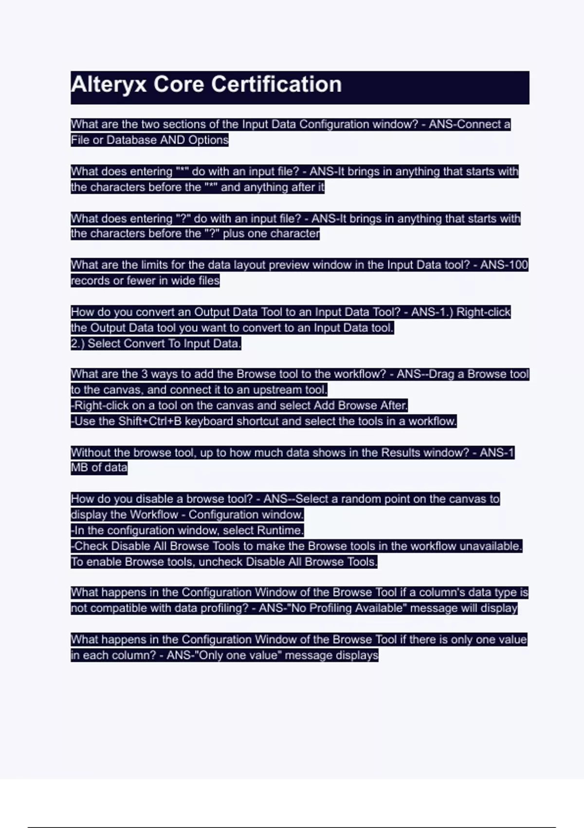 What are the 3 ways to add the Browse tool to the workflow? - ANS--Drag a Browse tool