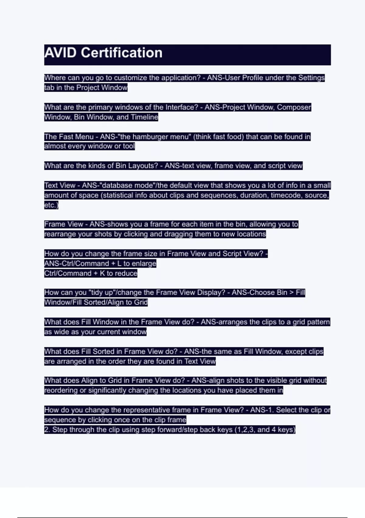 What does Fill Sorted in Frame View do? - ANS-the same as Fill Window, except clips
