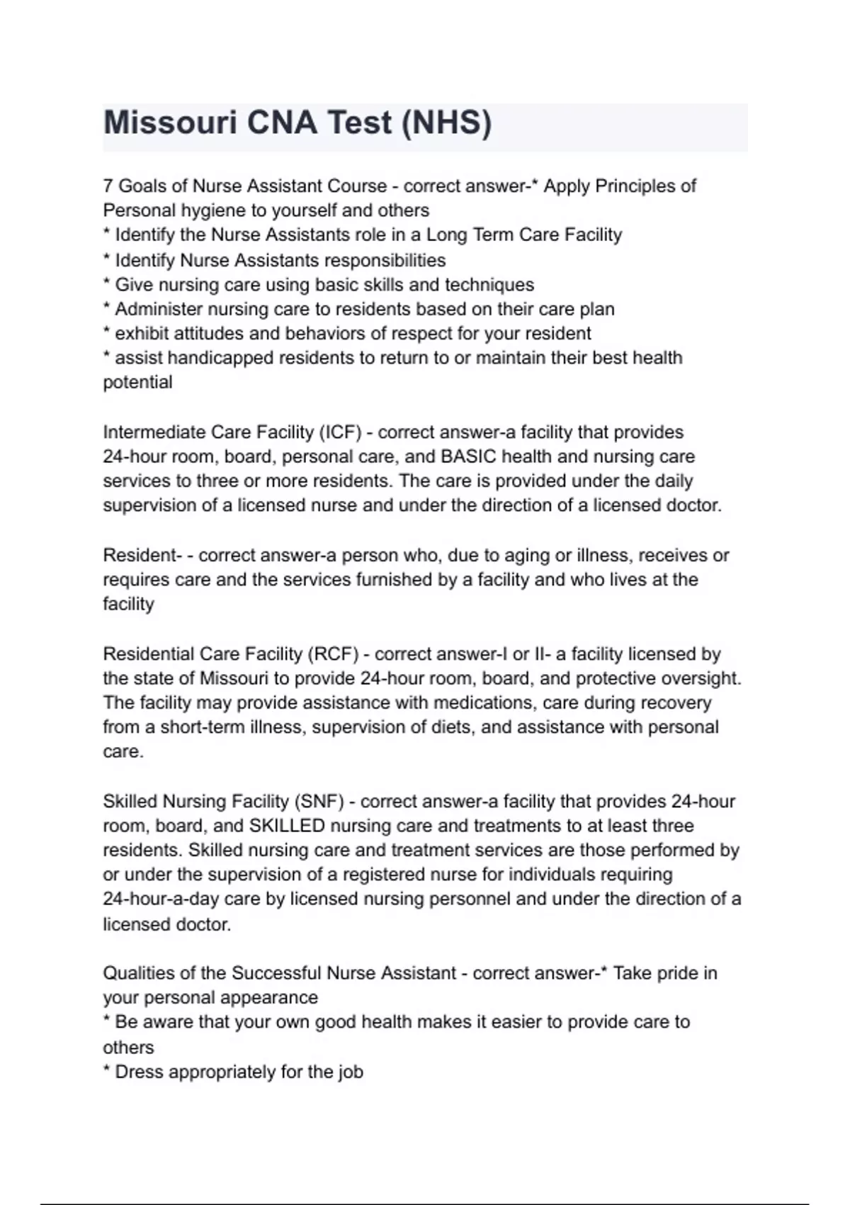 Missouri CNA Test (NHS)