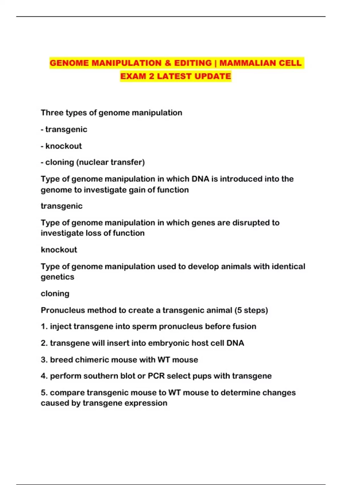 GENOME MANIPULATION & EDITING | MAMMALIAN CELL EXAM 2 LATEST UPDATE