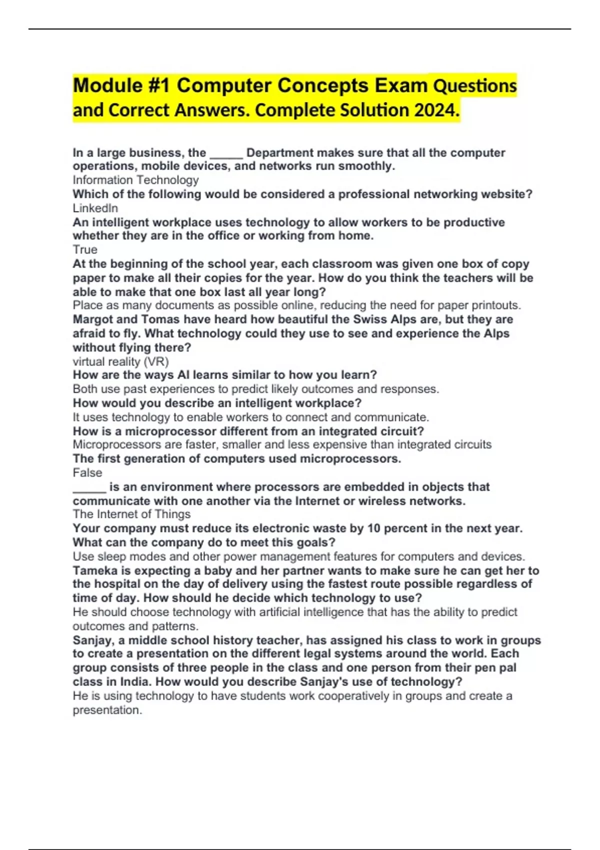and Correct Answers. Complete Solution 2024.