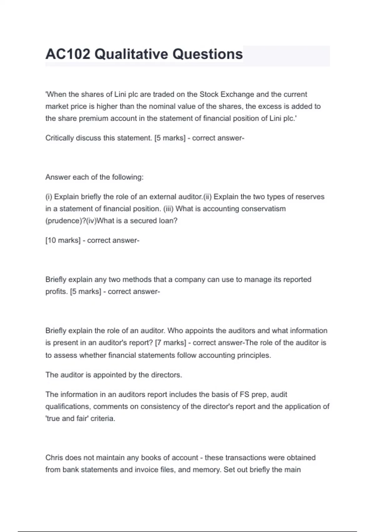 is present in an auditor's report? [7 marks] - correct answer-The role of the auditor is