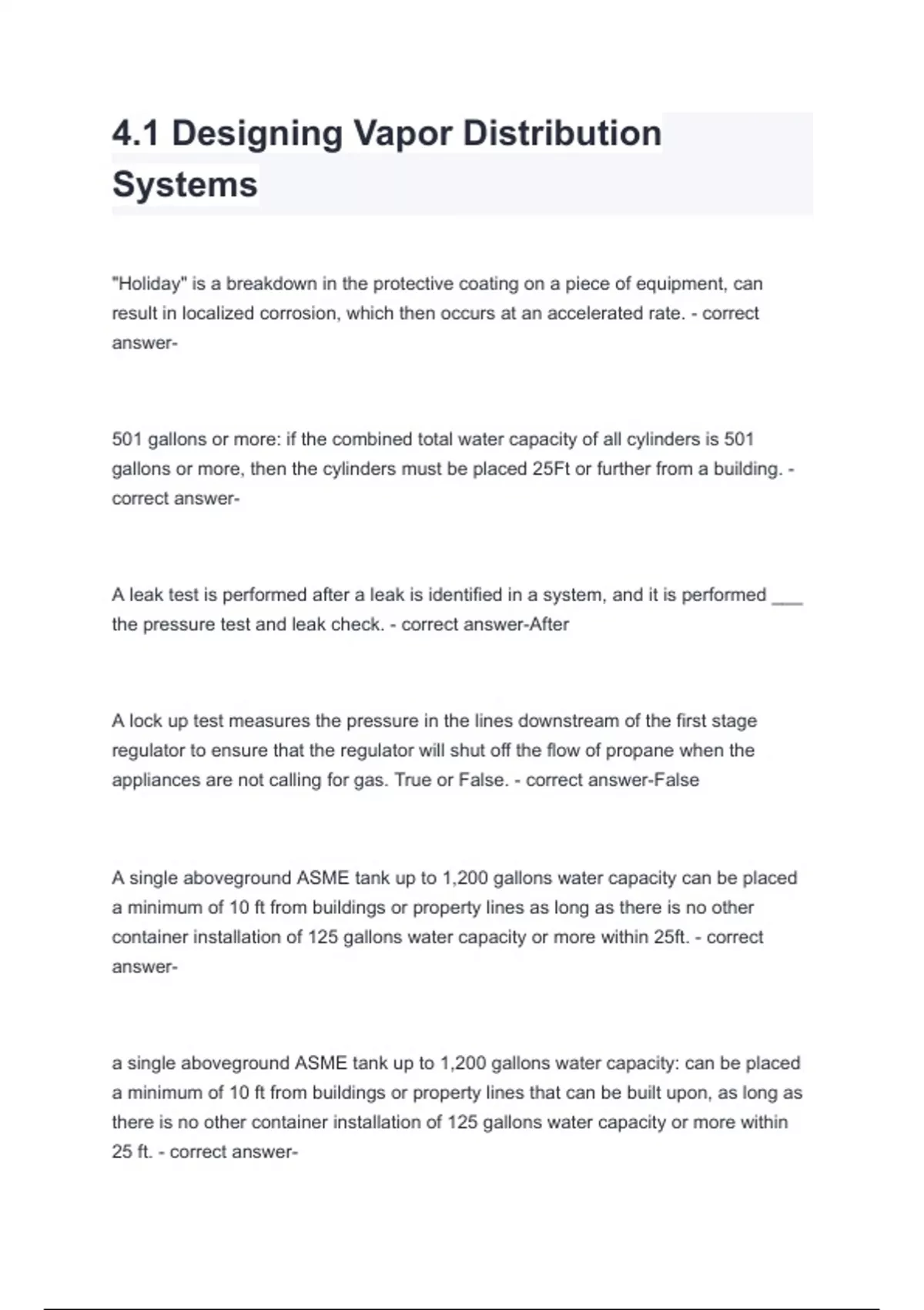 piping installation? - correct answer-Vapor distribution system piping can never be