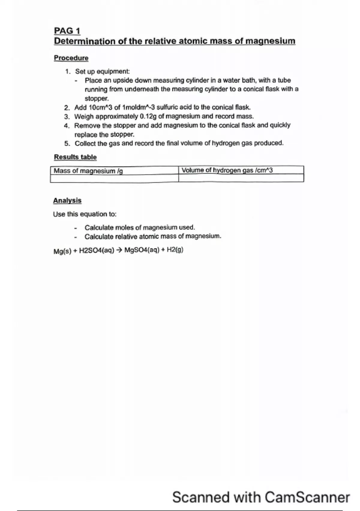 Methods, results tables and analysis of results for all chemistry OCR B required practicals