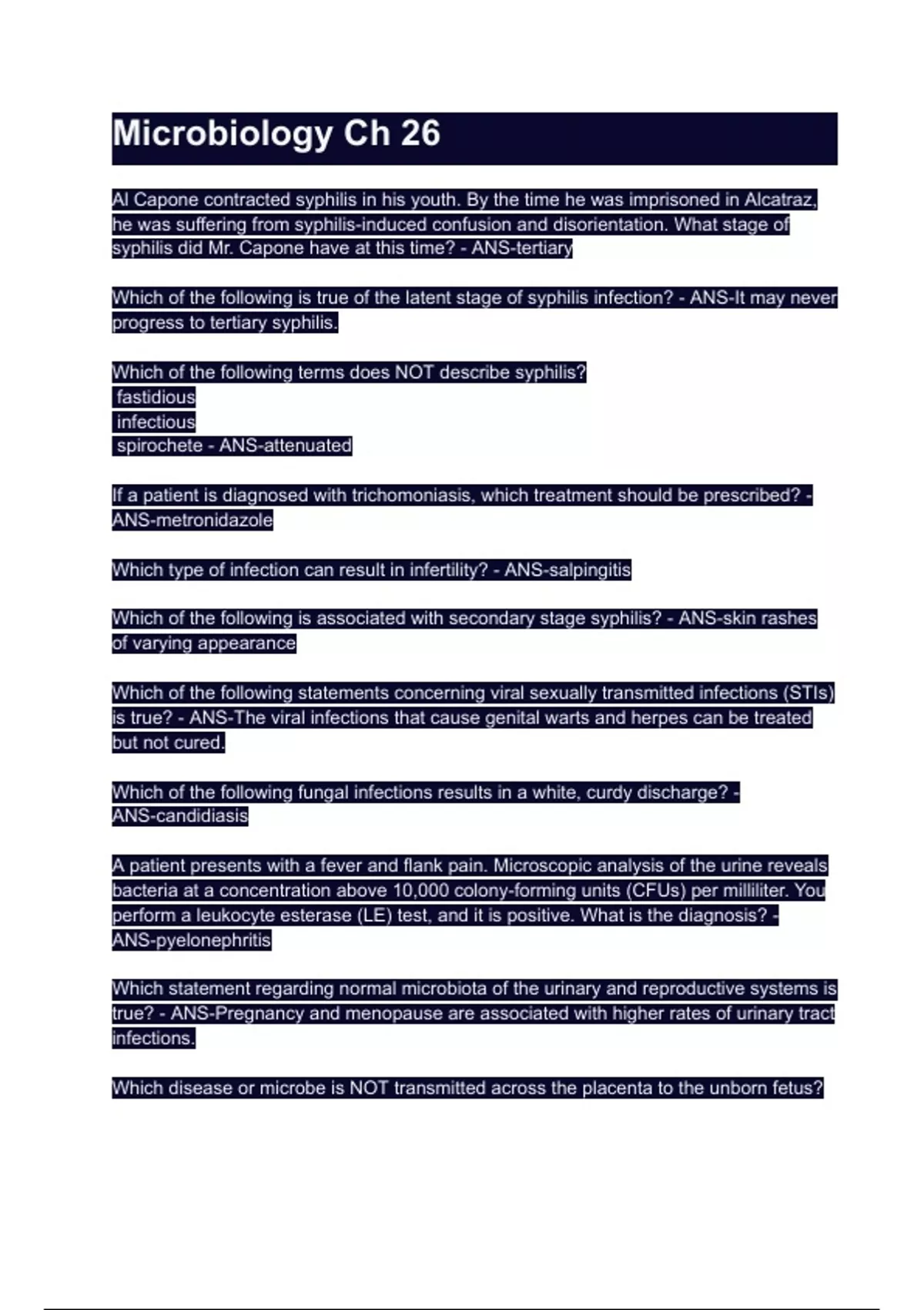 Microbiology Ch 26 Questions with 100% Actual correct answers | verified | latest update | Graded A+ | Already Passed | Complete Solution