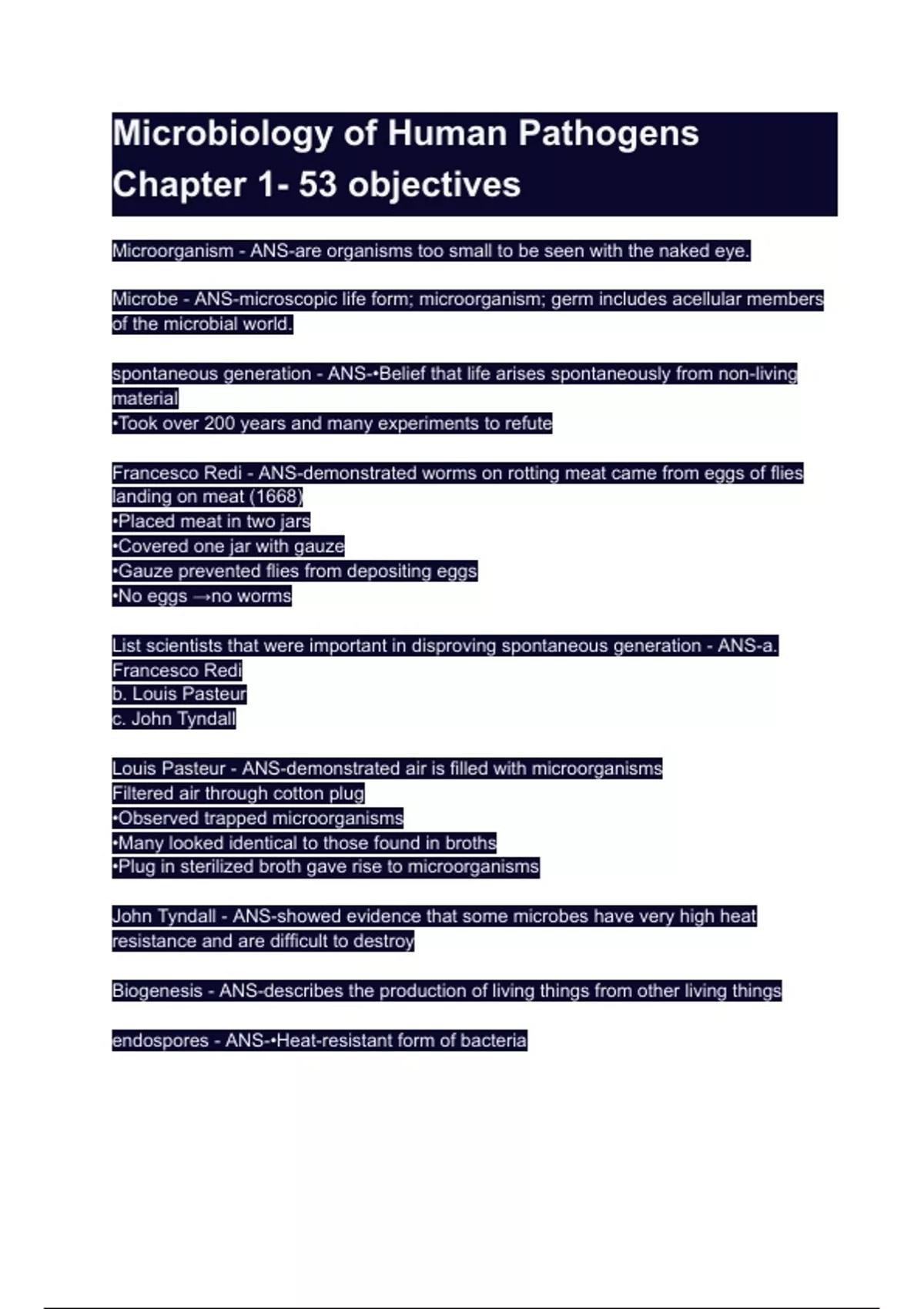 Microbiology of Human Pathogens Chapter 1- 53 objectives Questions with 100% Actual correct answers | verified | latest update | Graded A+ | Already Passed | Complete Solution