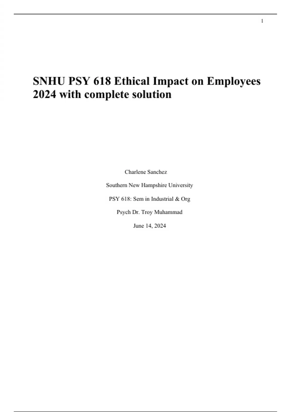 SNHU PSY 618 Ethical Impact on Employees 2024 with complete solution