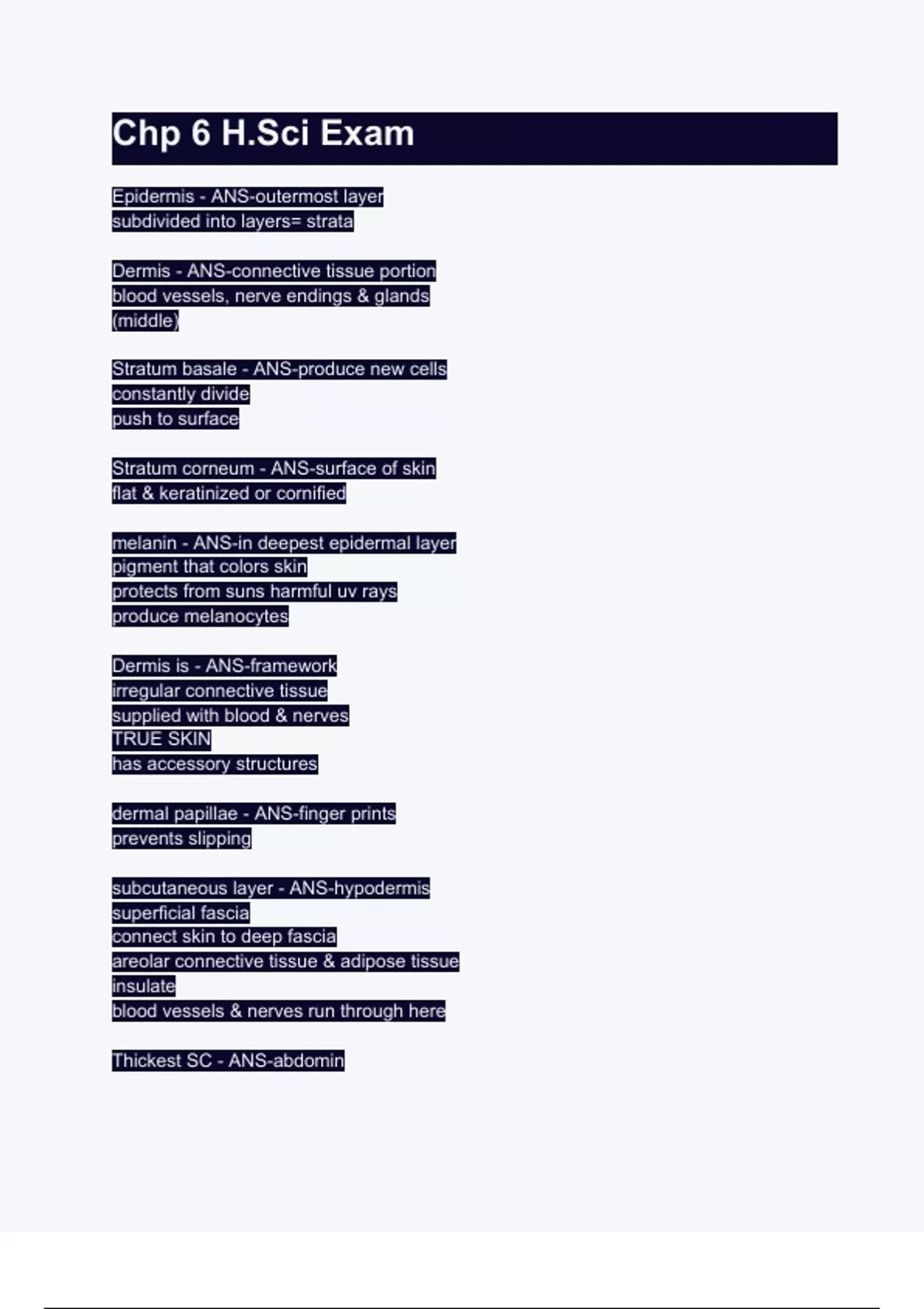 melanin - ANS-in deepest epidermal layer
