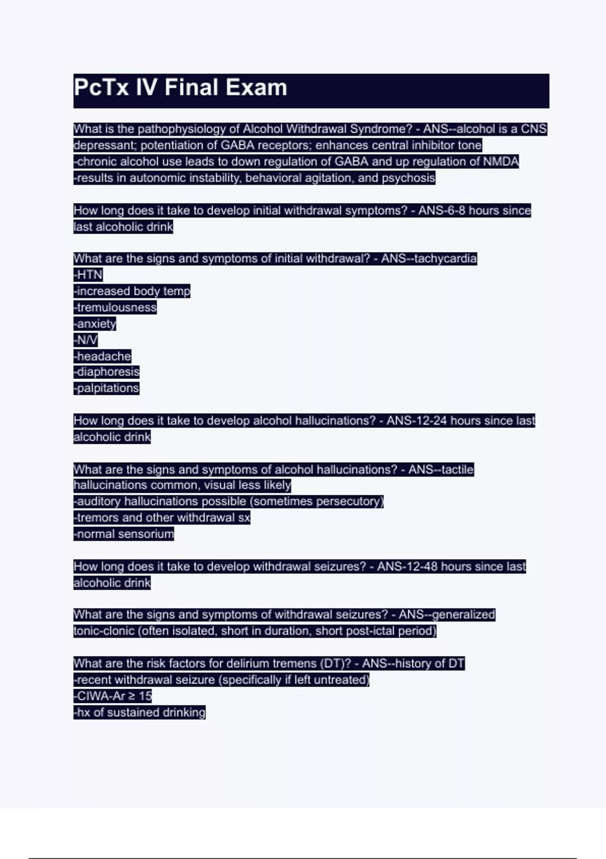 How long does it take to develop withdrawal seizures? - ANS-12-48 hours since last