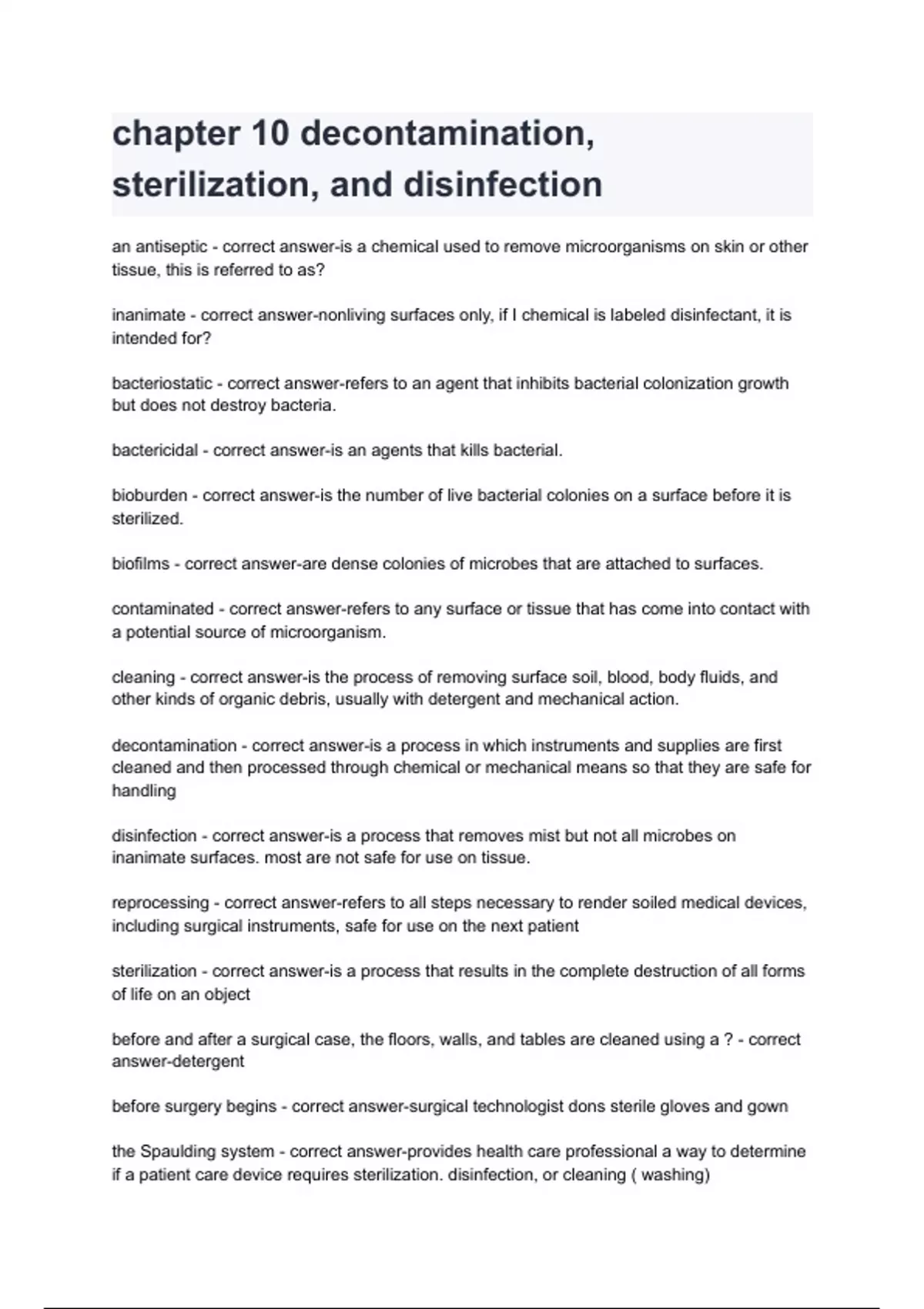 bioburden - correct answer-is the number of live bacterial colonies on a surface before it is