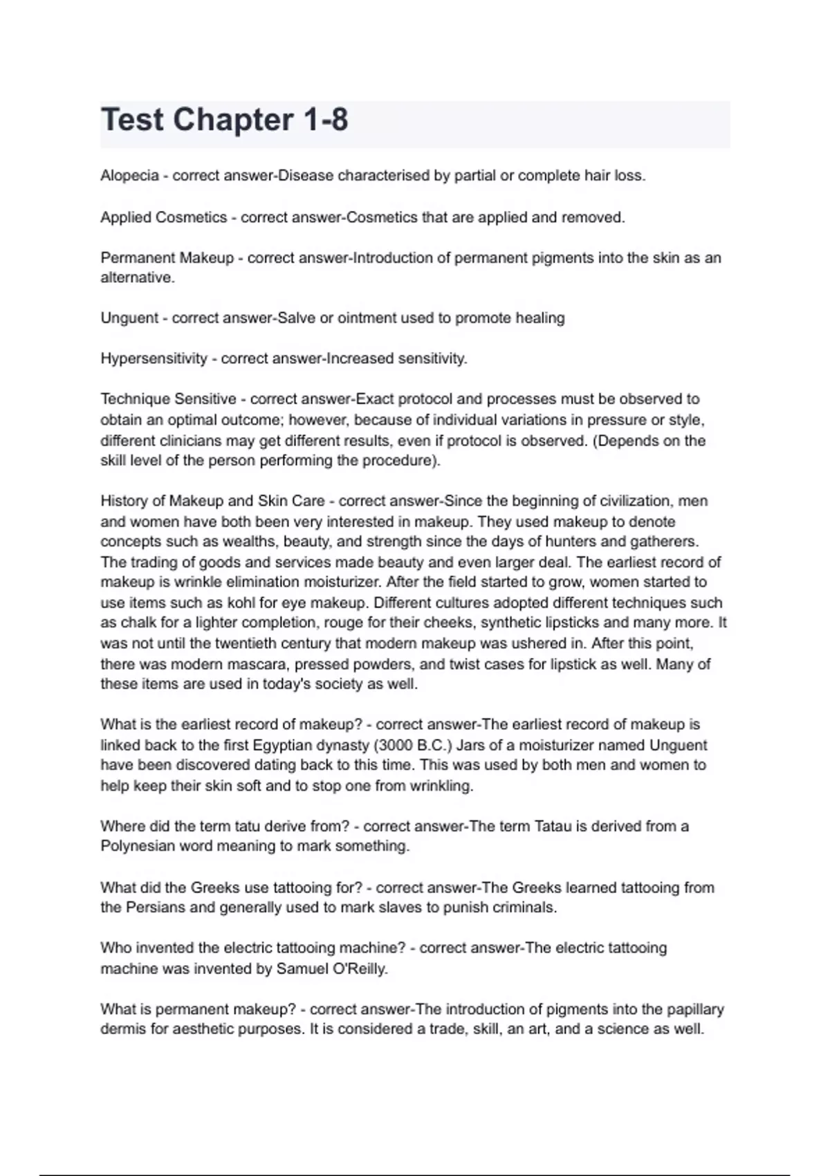 What is the earliest record of makeup? - correct answer-The earliest record of makeup is