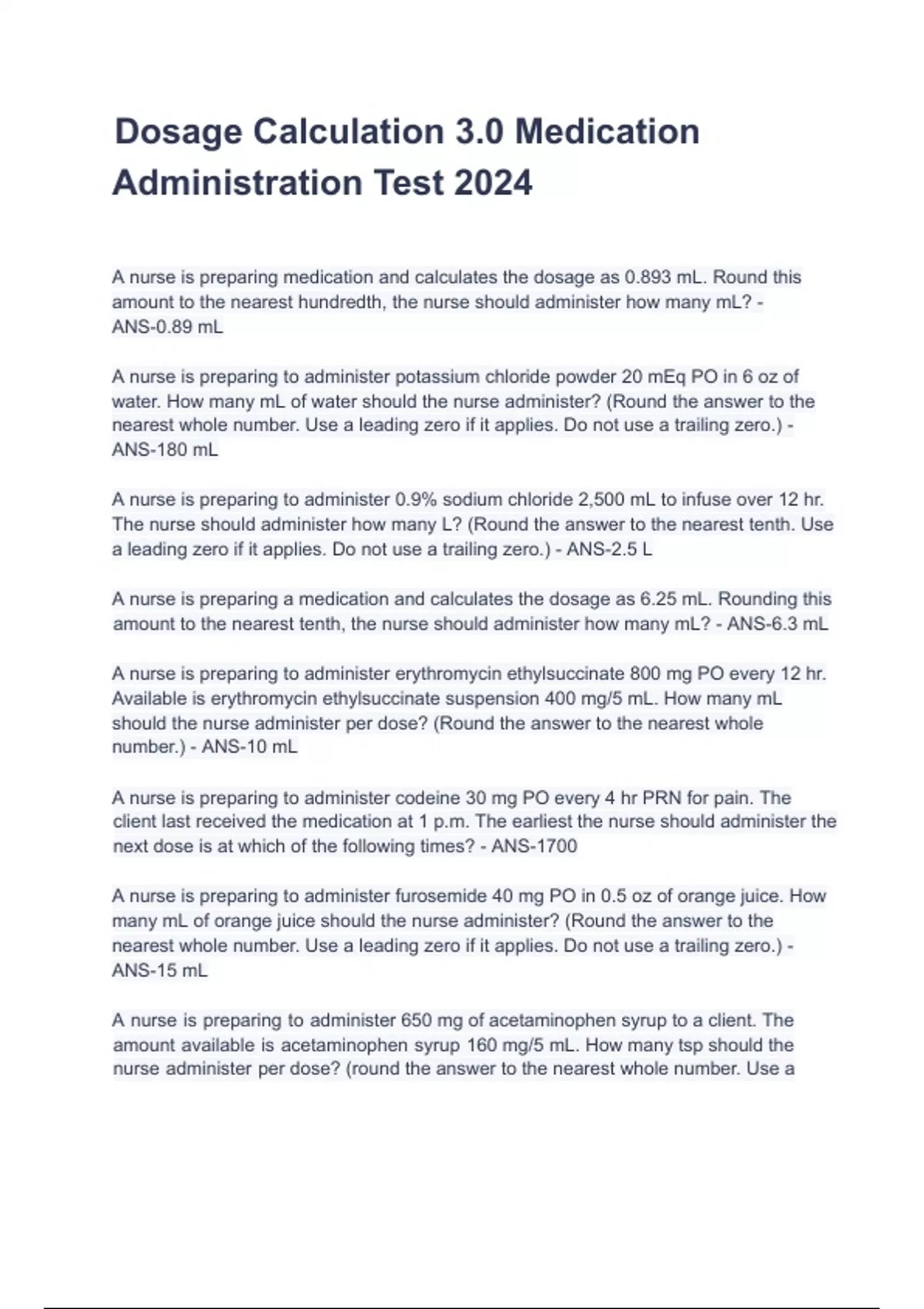 Dosage Calculation 3.0 Medication Administration Test 2024 (1)