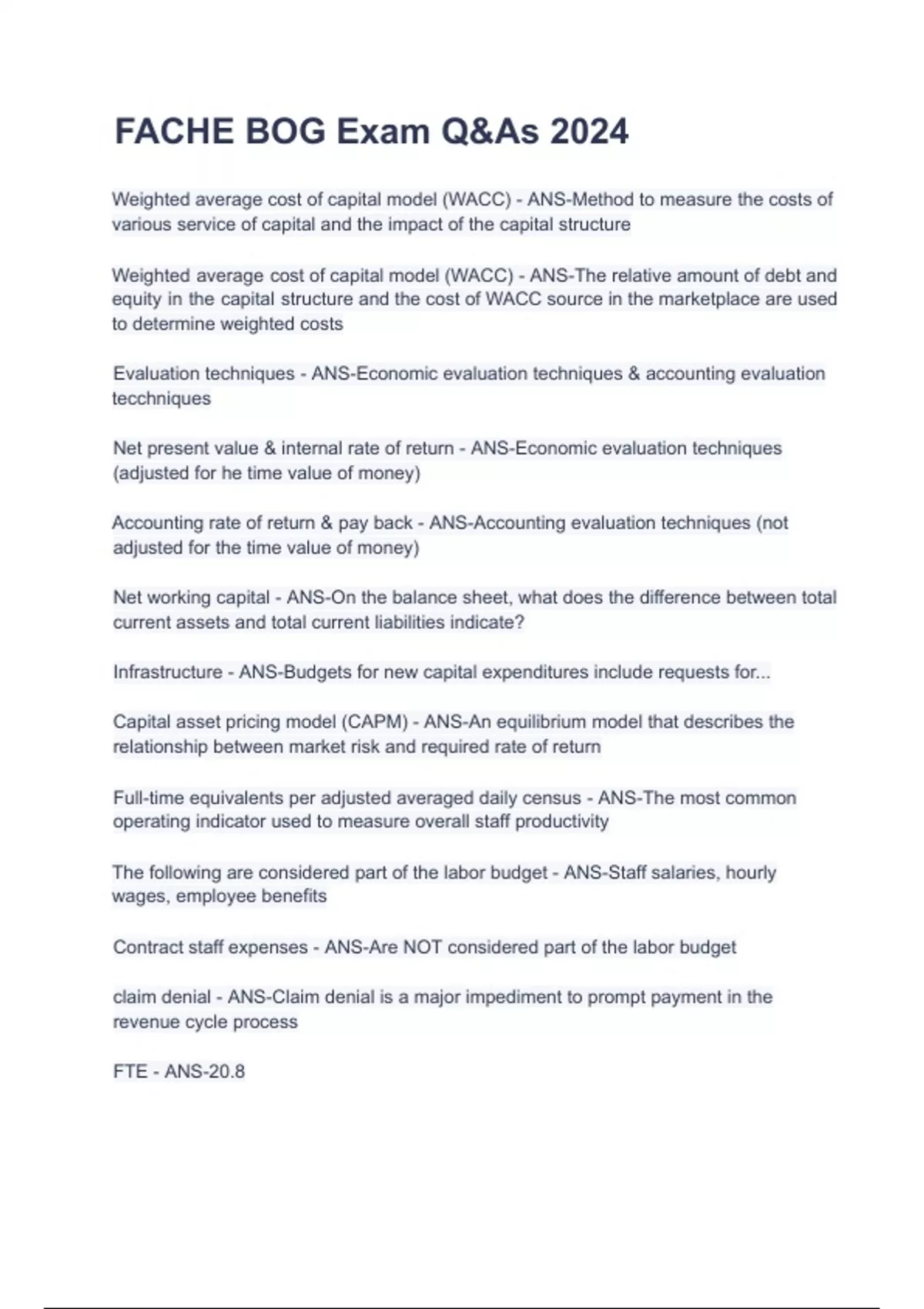 FACHE BOG Exam Q&As 2024