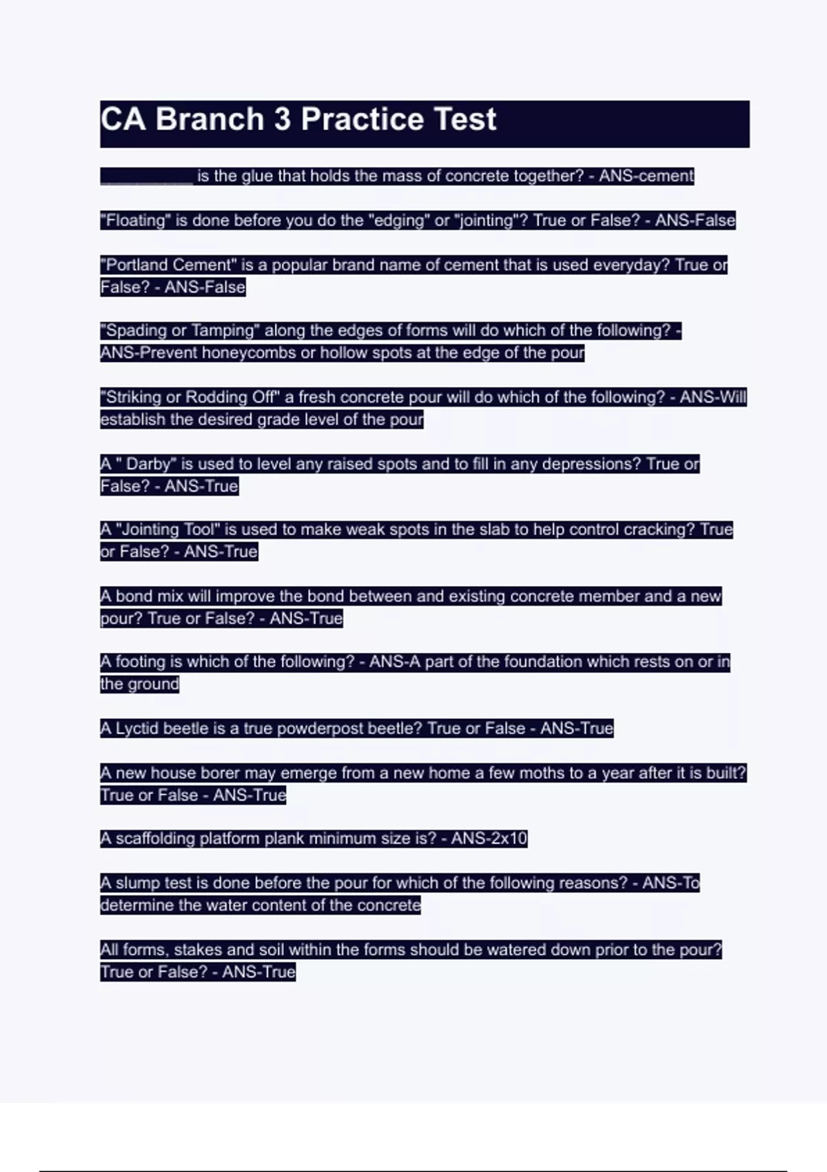 A slump test is done before the pour for which of the following reasons? - ANS-To