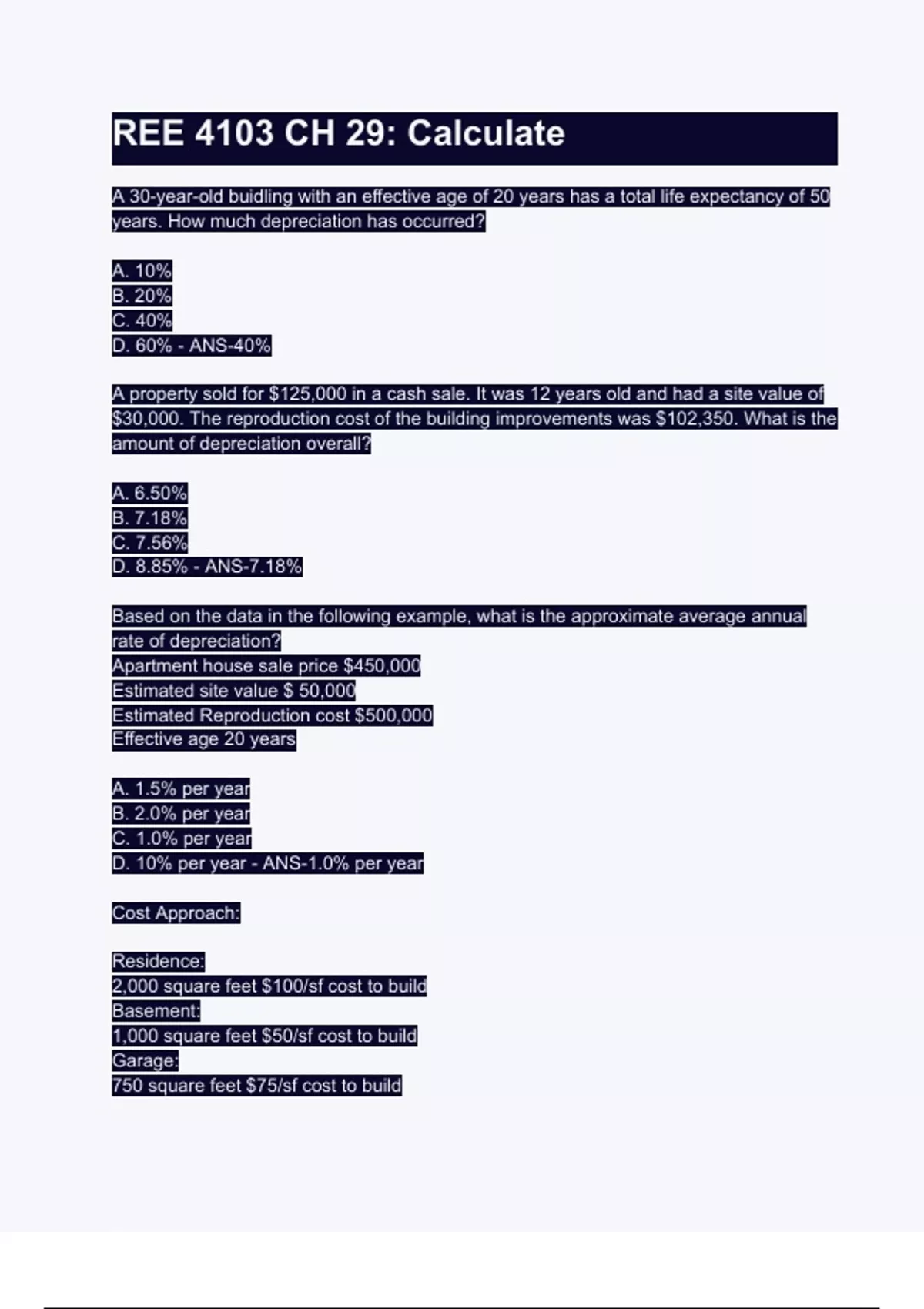 A property sold for $125,000 in a cash sale. It was 12 years old and had a site value of
