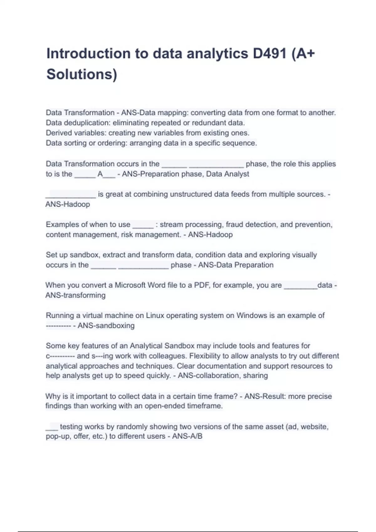 Introduction to data analytics D491 (A+