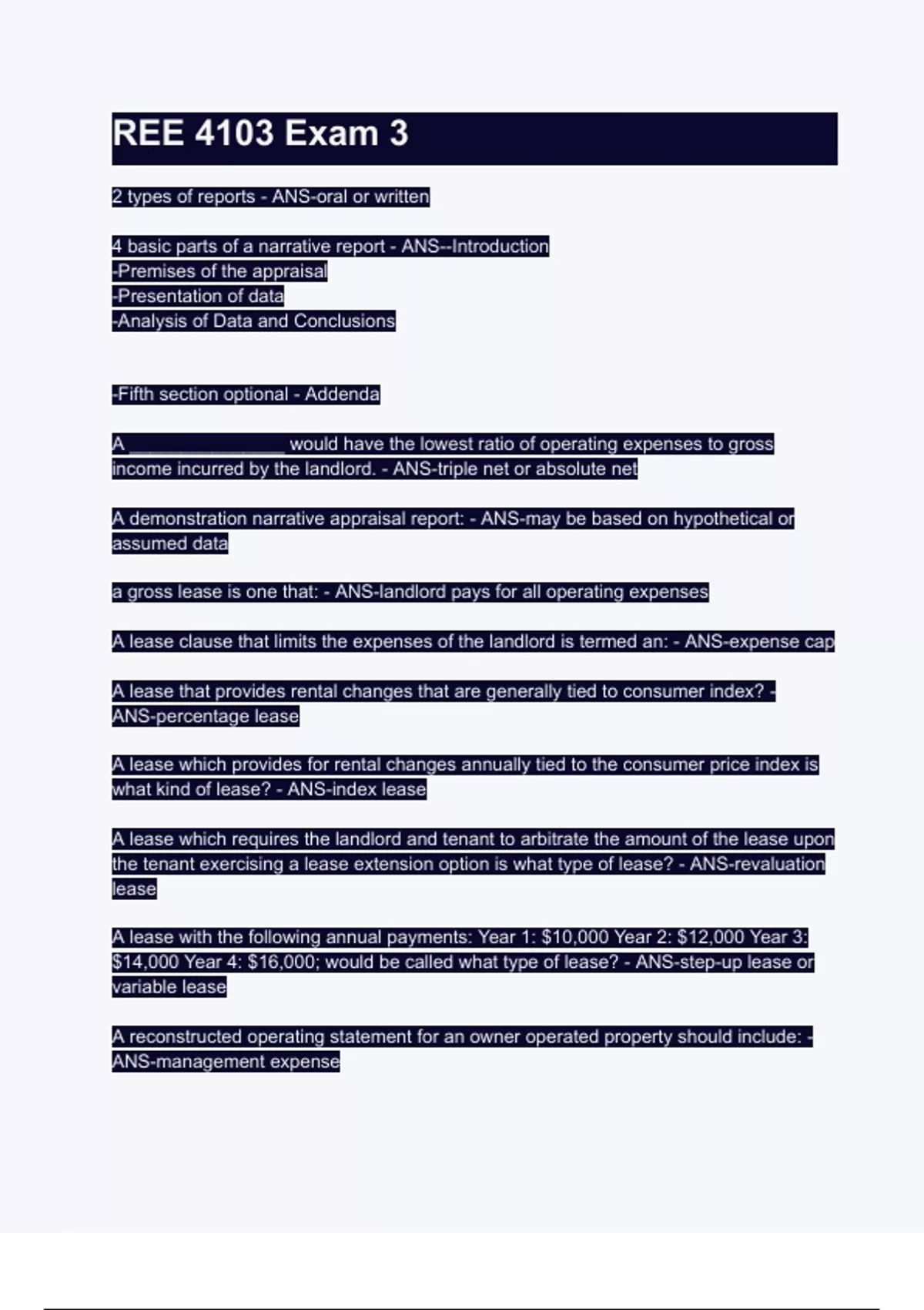 the tenant exercising a lease extension option is what type of lease? - ANS-revaluation
