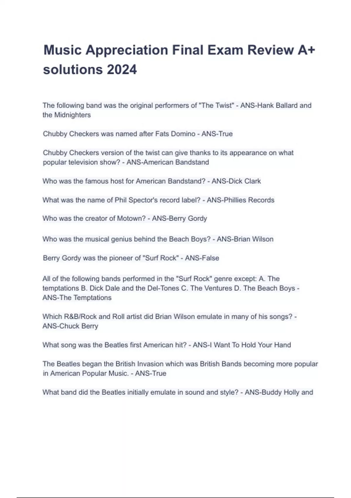 Music Appreciation Final Exam Review A+