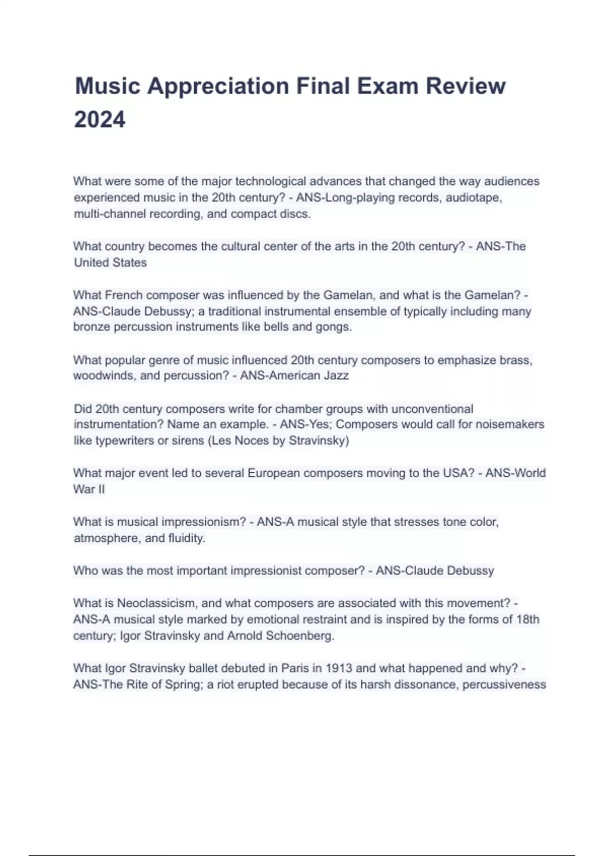 What is musical impressionism? - ANS-A musical style that stresses tone color,