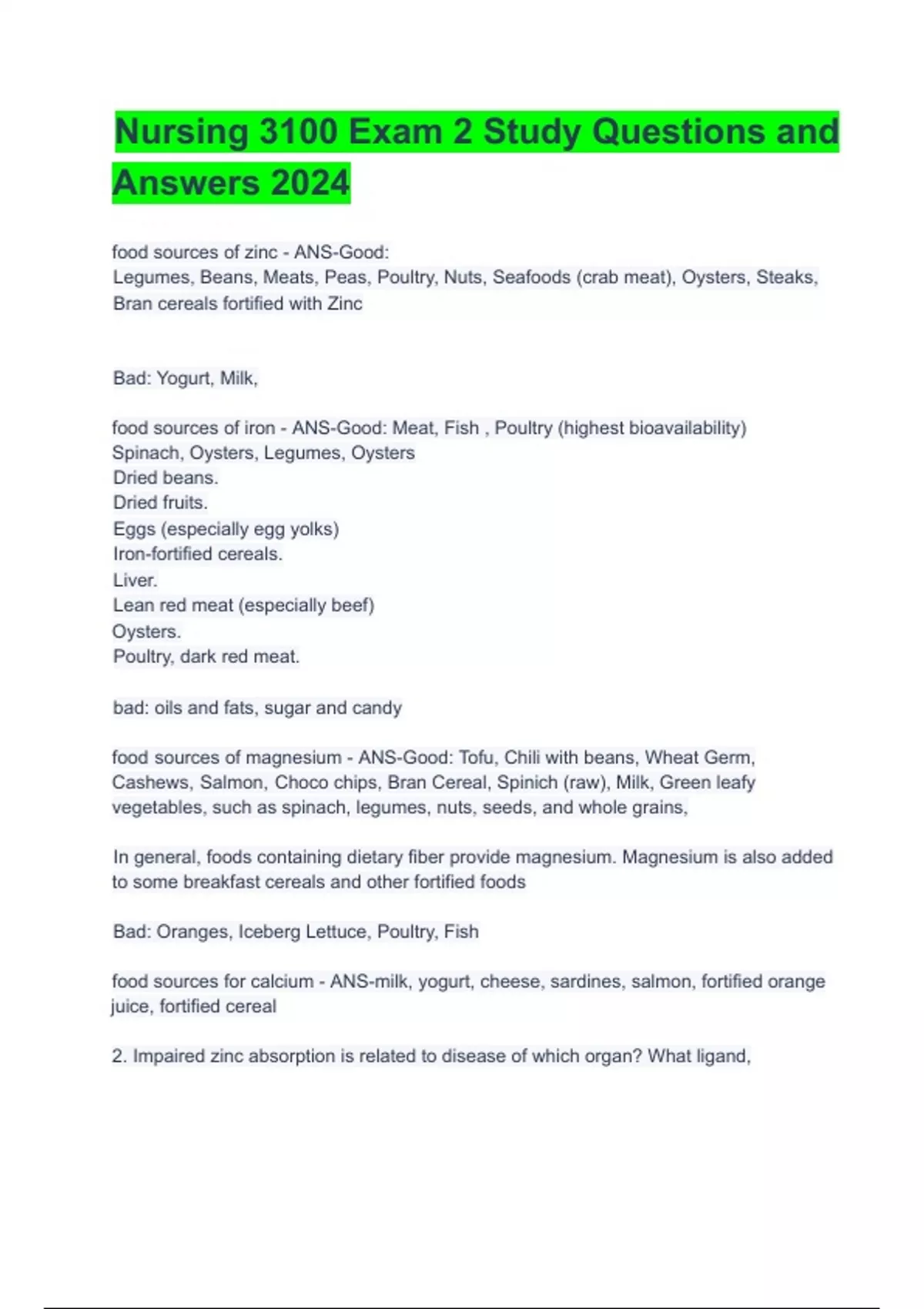 2. Impaired zinc absorption is related to disease of which organ? What ligand,