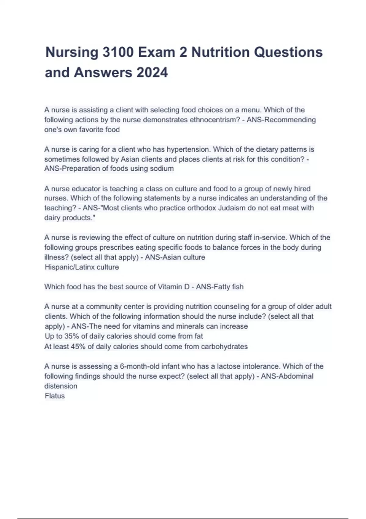 A nurse educator is teaching a class on culture and food to a group of newly hired