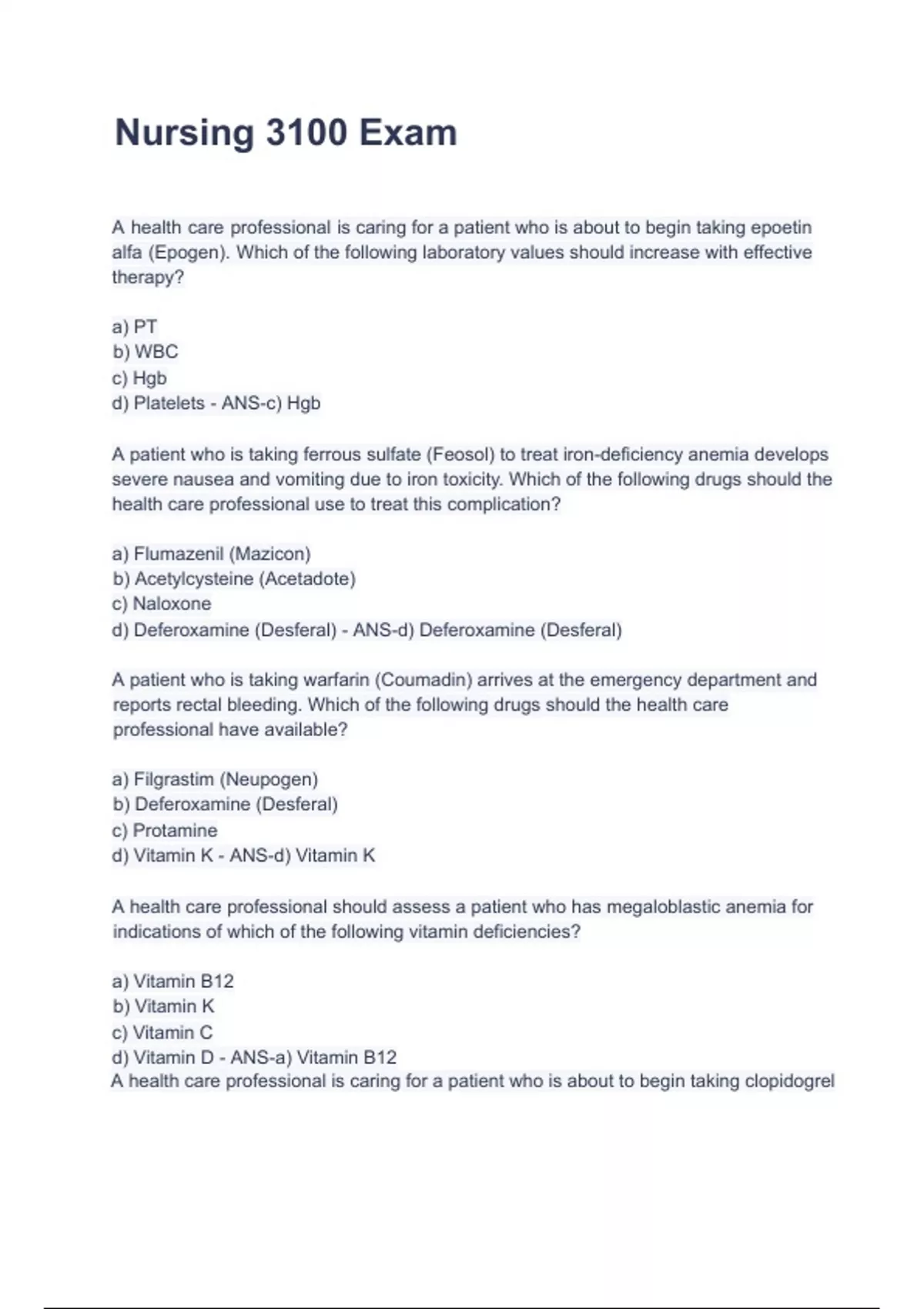 A health care professional is caring for a patient who is about to begin taking epoetin