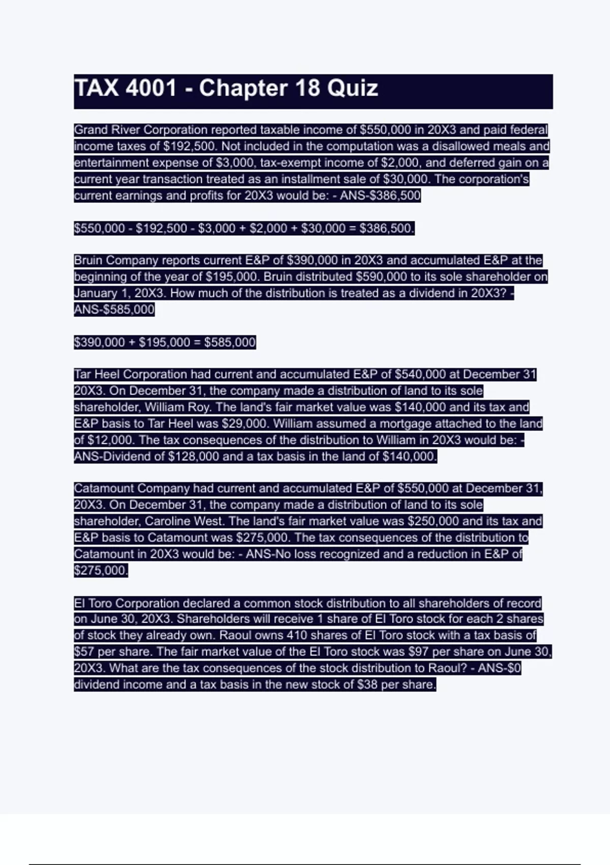 TAX 4001 - Chapter 18 Quiz
