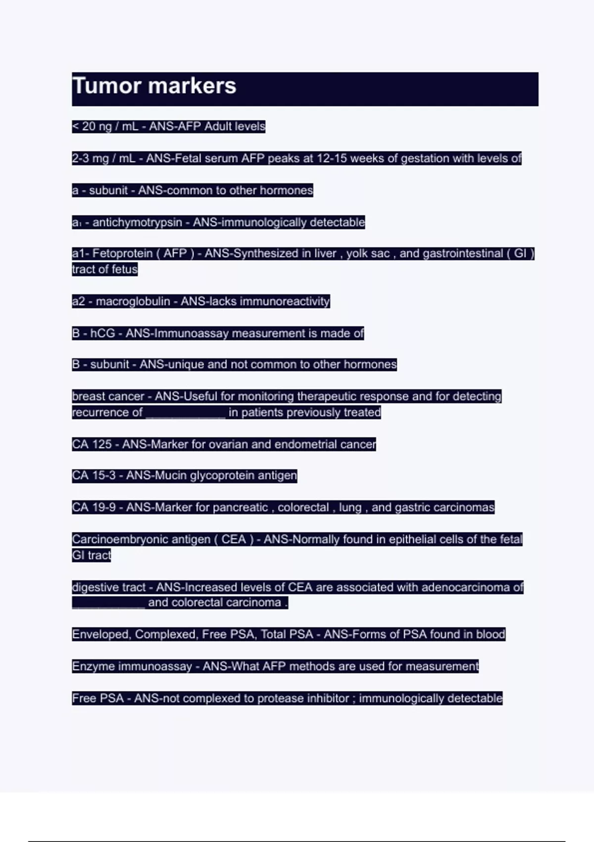 Exam of 3 pages for the course BIO 245 at BIO 245 (Tumor markers.)