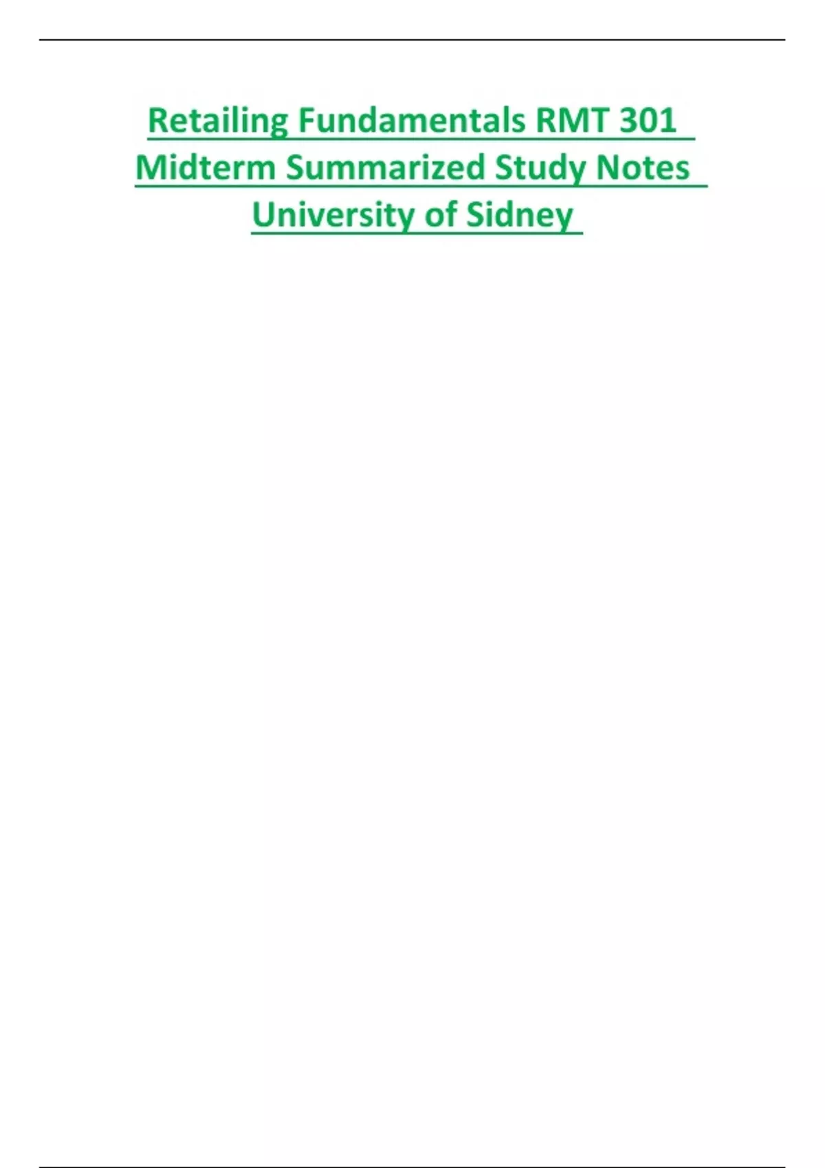 Retailing Fundamentals RMT 301 Midterm Summarized Study Notes University of Sidney