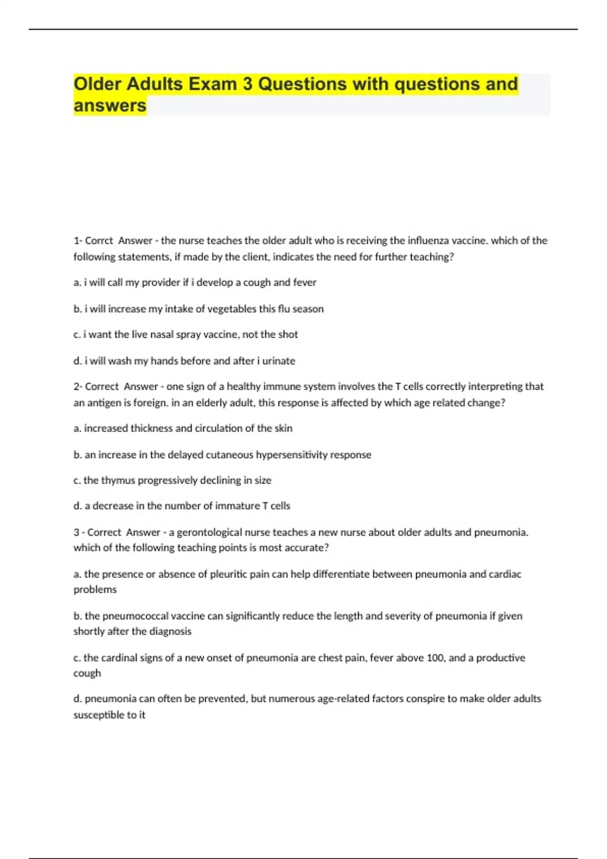 3 - Correct Answer - a gerontological nurse teaches a new nurse about older adults and pneumonia.