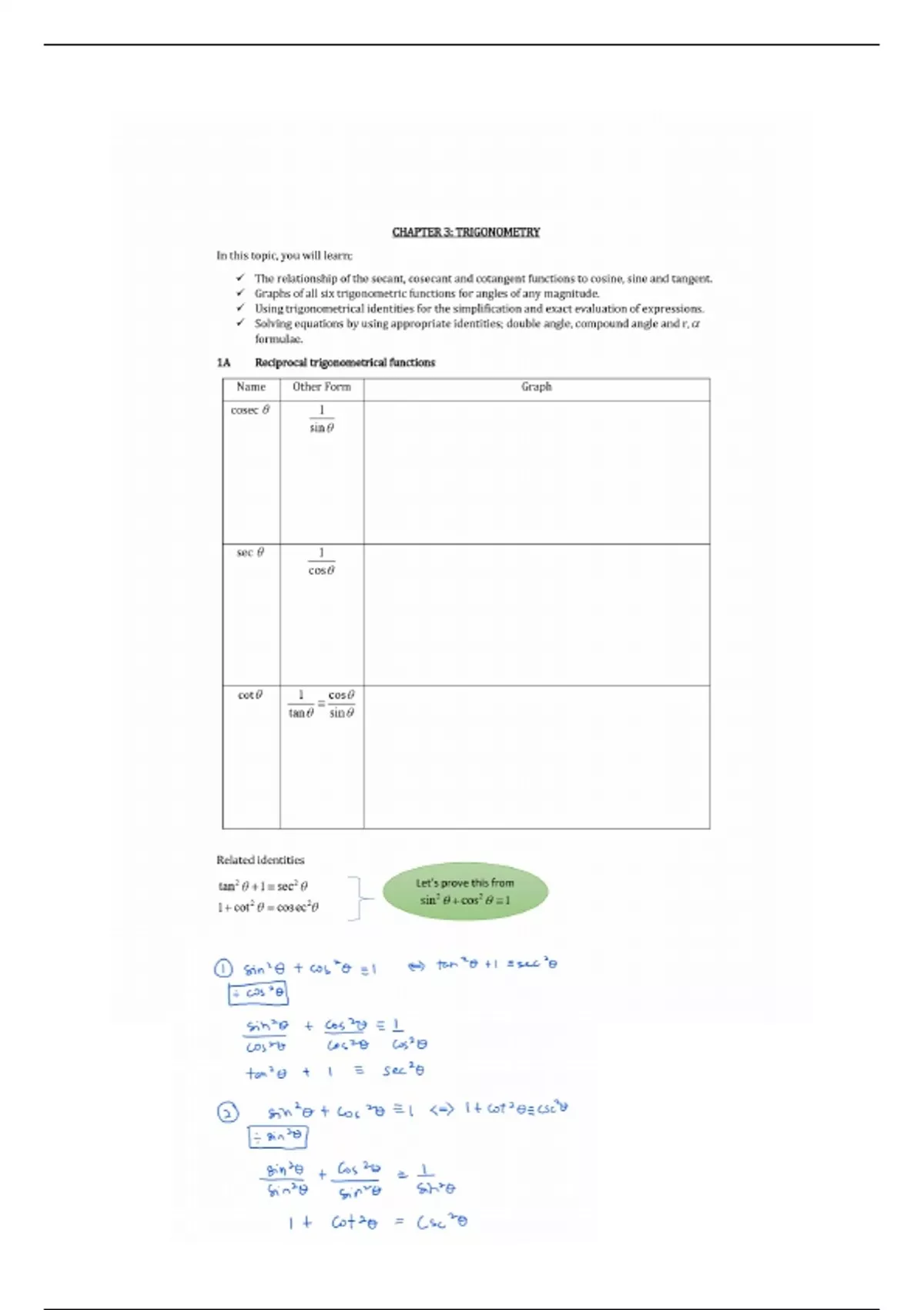 Trigonometry - Reciprocal trigonometrical function - compound angle - Double angle and r formula