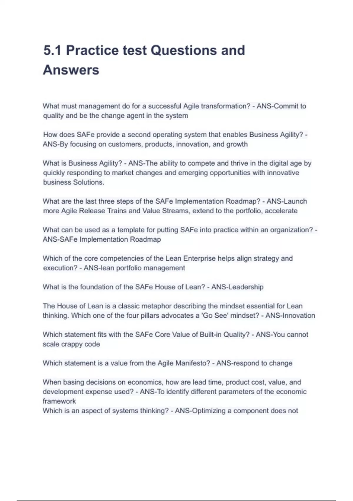 5.1 Practice test Questions and